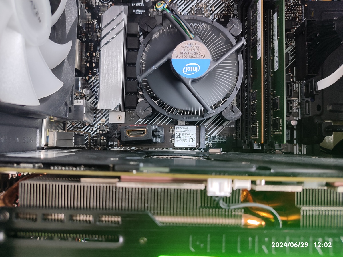 저는 평소에 잘 알고 있는 부분이라서 이 커넥터를 90도로 회전해서 꽂아볼 생각을 못해봤는데요. 이렇게도 꽂을 수 있는 걸 20년 이상 컴퓨터를 보면서 처음으로 본 거 같네요. 이렇게 꽂을 수 있다는 걸 생각을 못해본 거 같습니다. 그리고 CPU 쿨러의 고정 핀 방향이 제대로 장착되지 않은 게 보입니다. (관련글 참조 : CPU 보조전원 케이블을 잘못 연결했는데, 정상적으로 사용하신 분도 계십니다.)