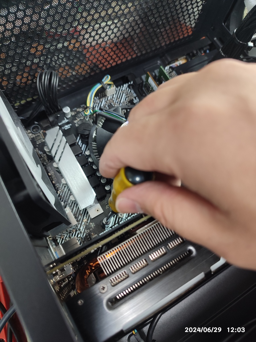 서멀 재도포CPU 쿨러 장착 상태 확인 중