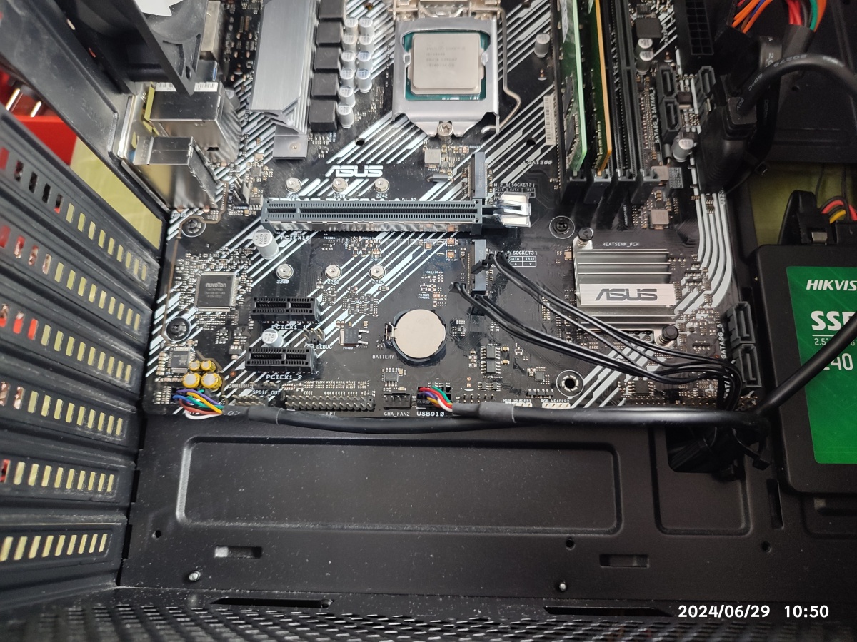 조립을 하기는 했지만, 전반적으로 다시 확인하고 재조립해야 합니다. 다행히, CPU는 장착된 상태로 열어보지 않았다고 합니다. 그래도 CPU 소켓 핀 상태를 다시 한번 확인하고 재조립하는 게 좋습니다. 장착된 CPU는 인텔 i5-10400 제품입니다.