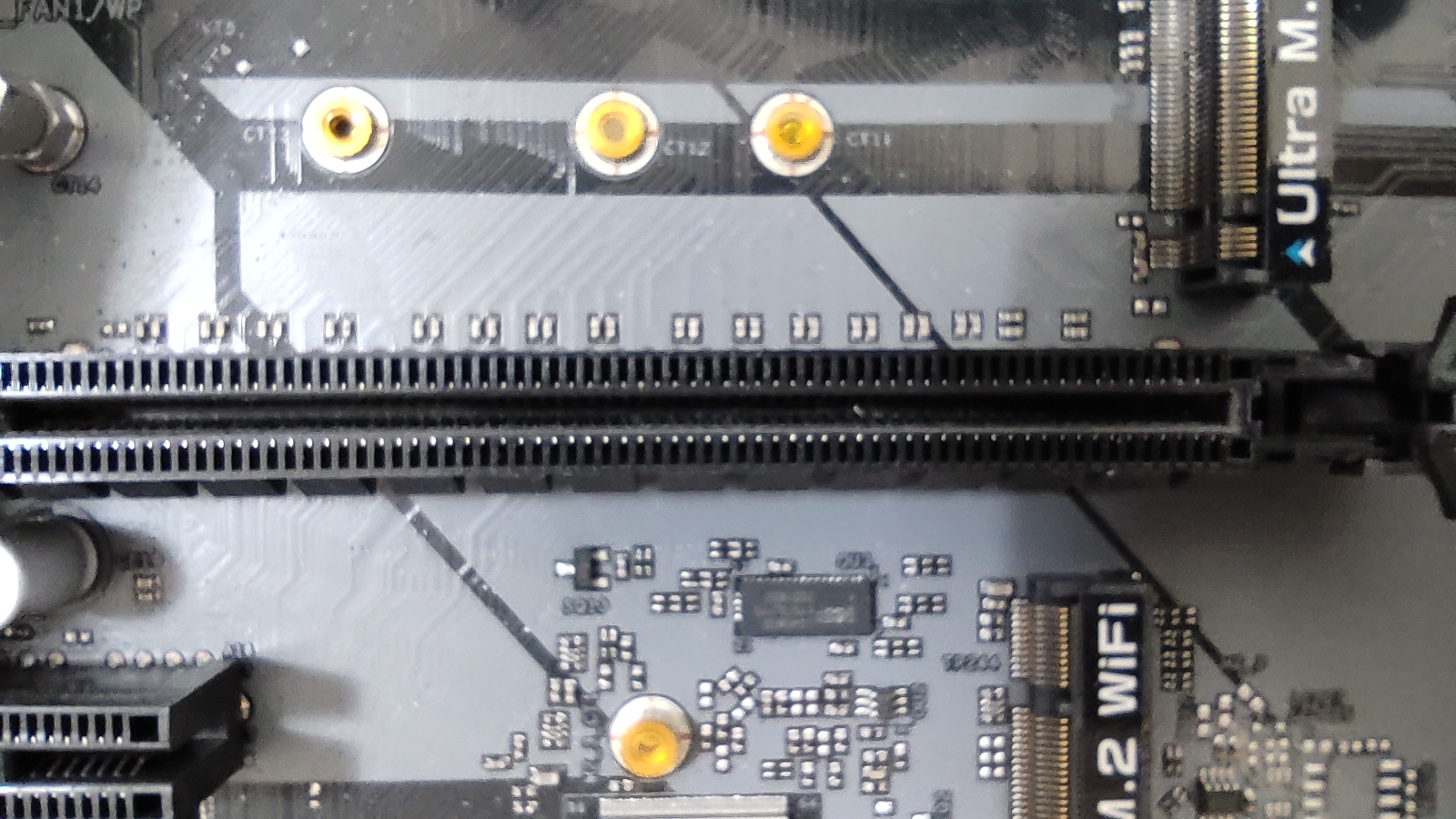 슬롯을 자세히 훑어보니 오른쪽 제일 마지막 상단 핀이 안 보입니다. 빈칸입니다.