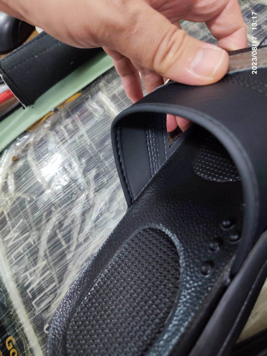 새 제품은 발등을 감싸는 부분이 옆면이랑 딱 붙어있습니다. 이 부분이 떨어지면, 슬리퍼가 미끄럽고 돌아가고 그러더라고요.