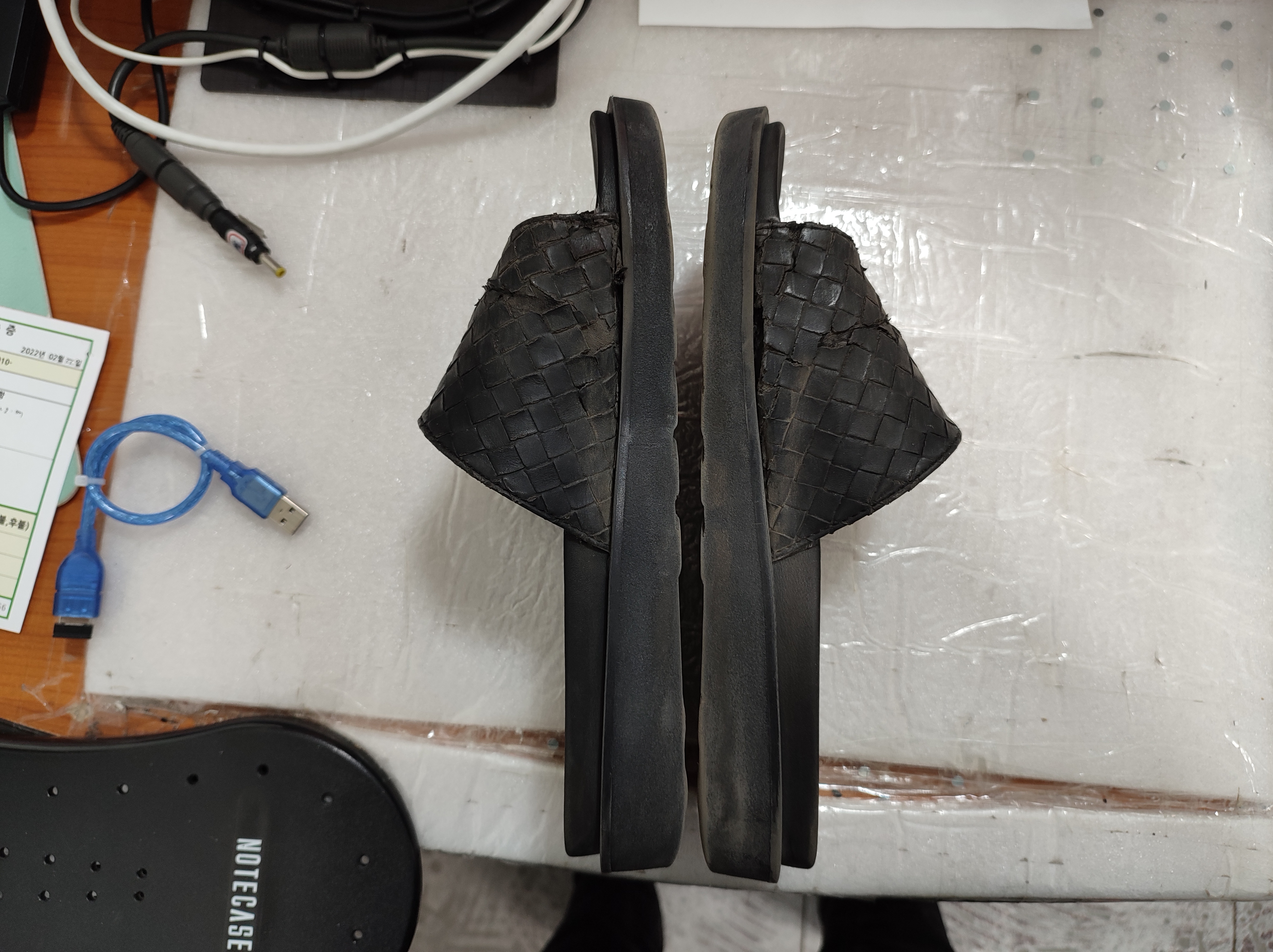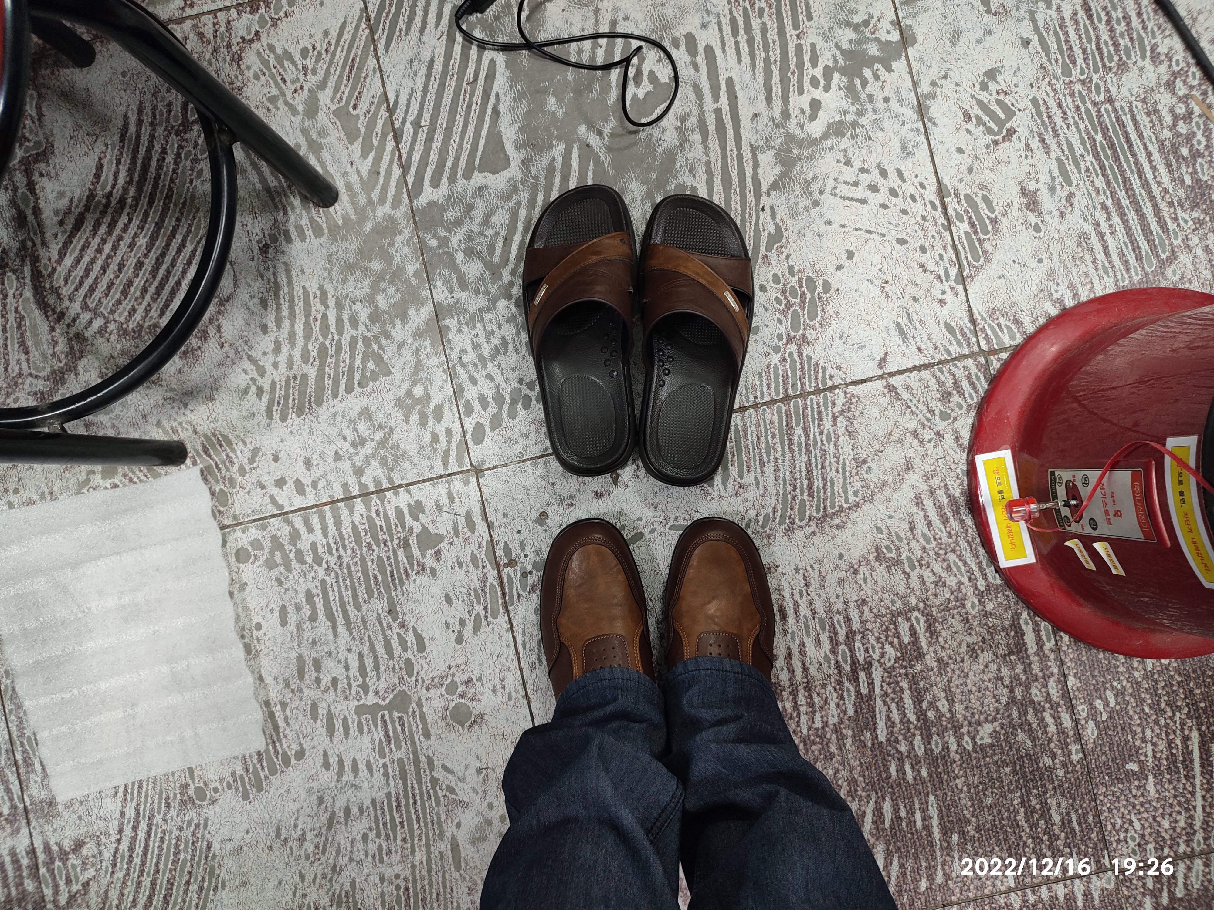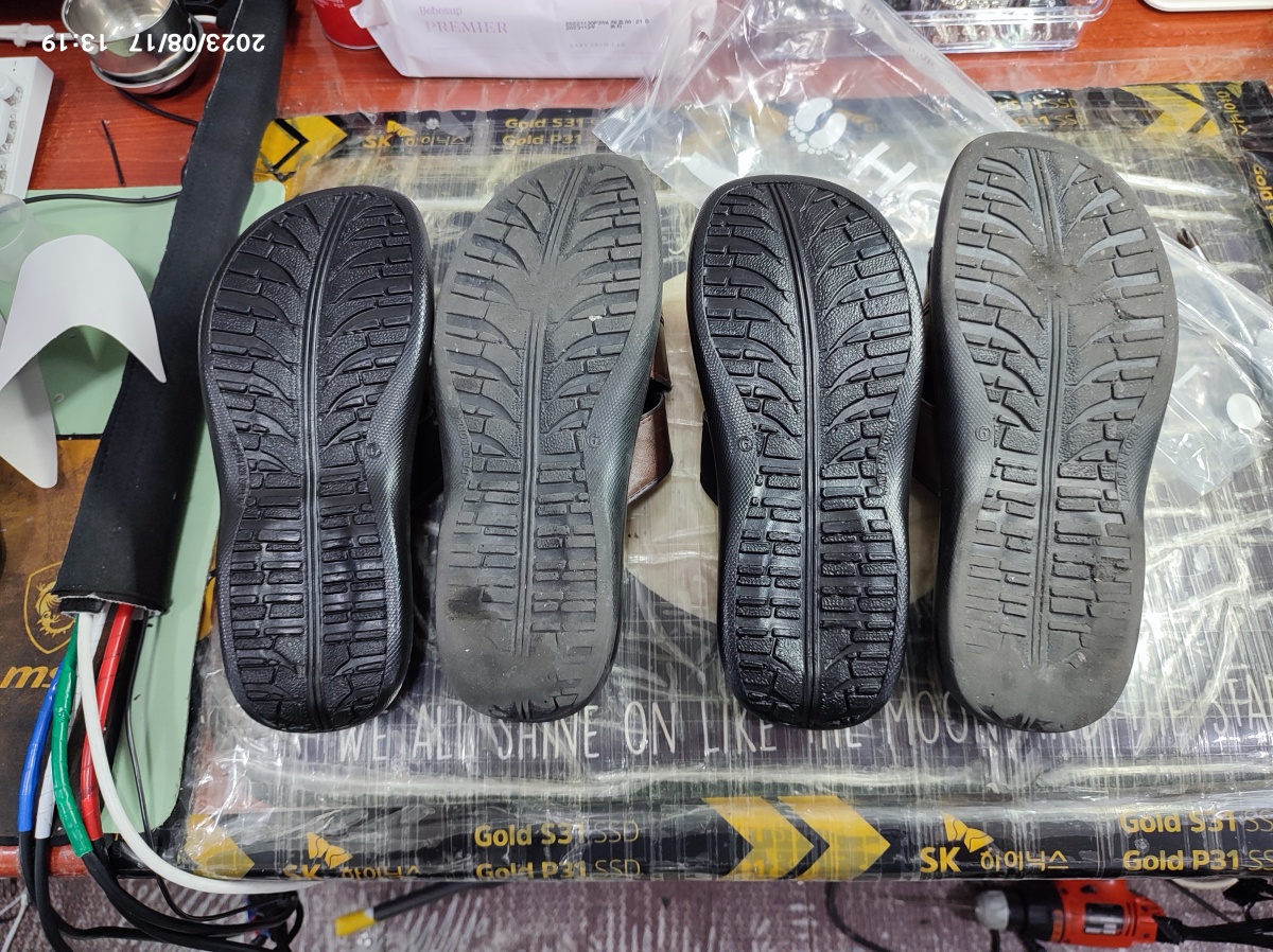 1년 신은 실내화(갈색)와 새로 구입한 검은색 실내화의 쿠션 강도 비교 영상입니다.