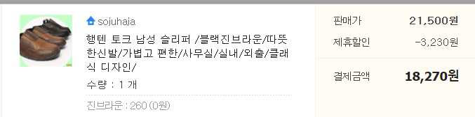 옥션에서 세일하길래 하나 샀습니다. 이런 실내화는 바닥이 찢어지면서 물이 스며들어서 양말이 젖을 때 즈...