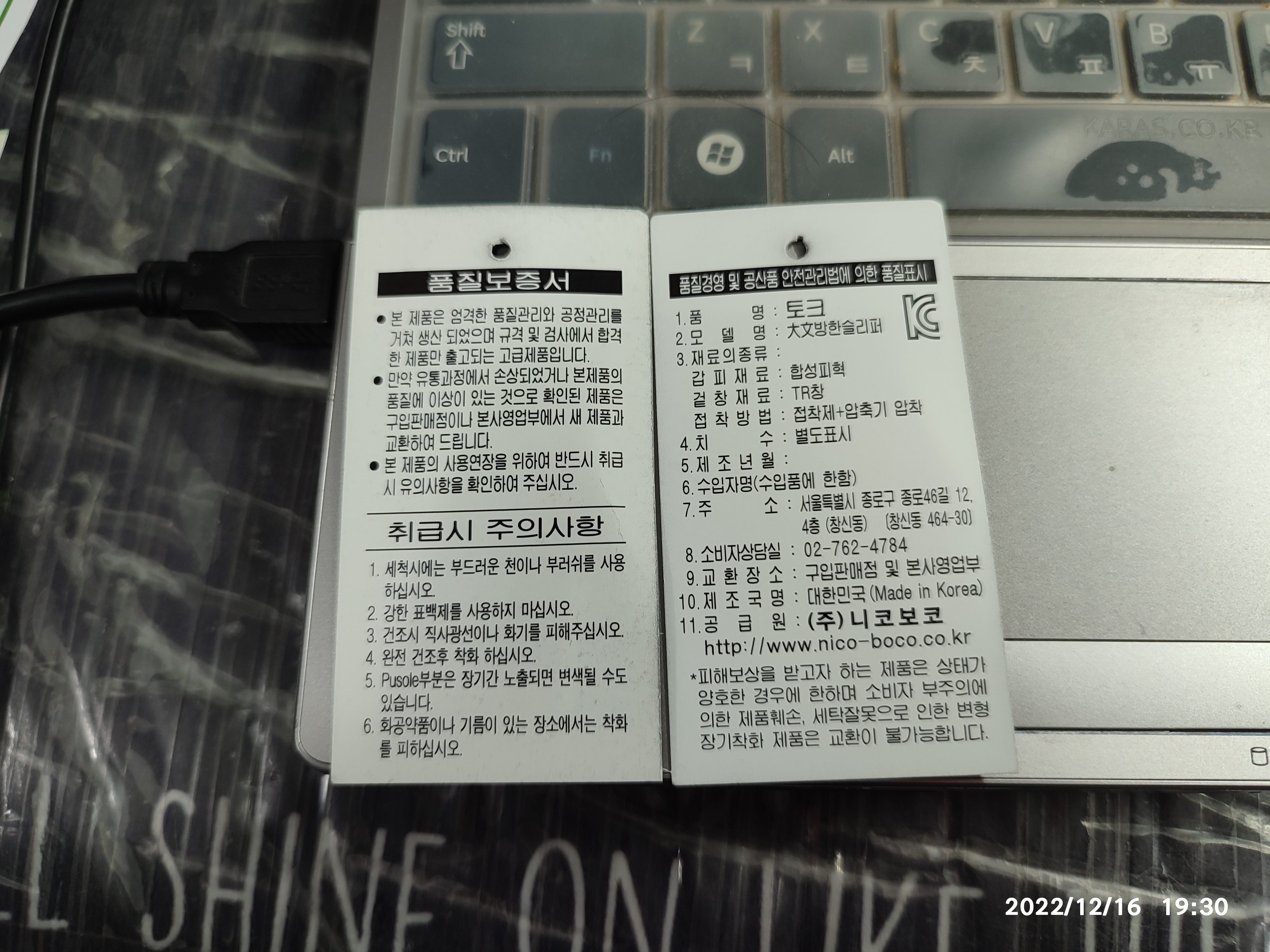 품질보증서인데요. 공급원이 (주)니코보코네요. 니코복코 오래만에 들어보네요. 합성피혁