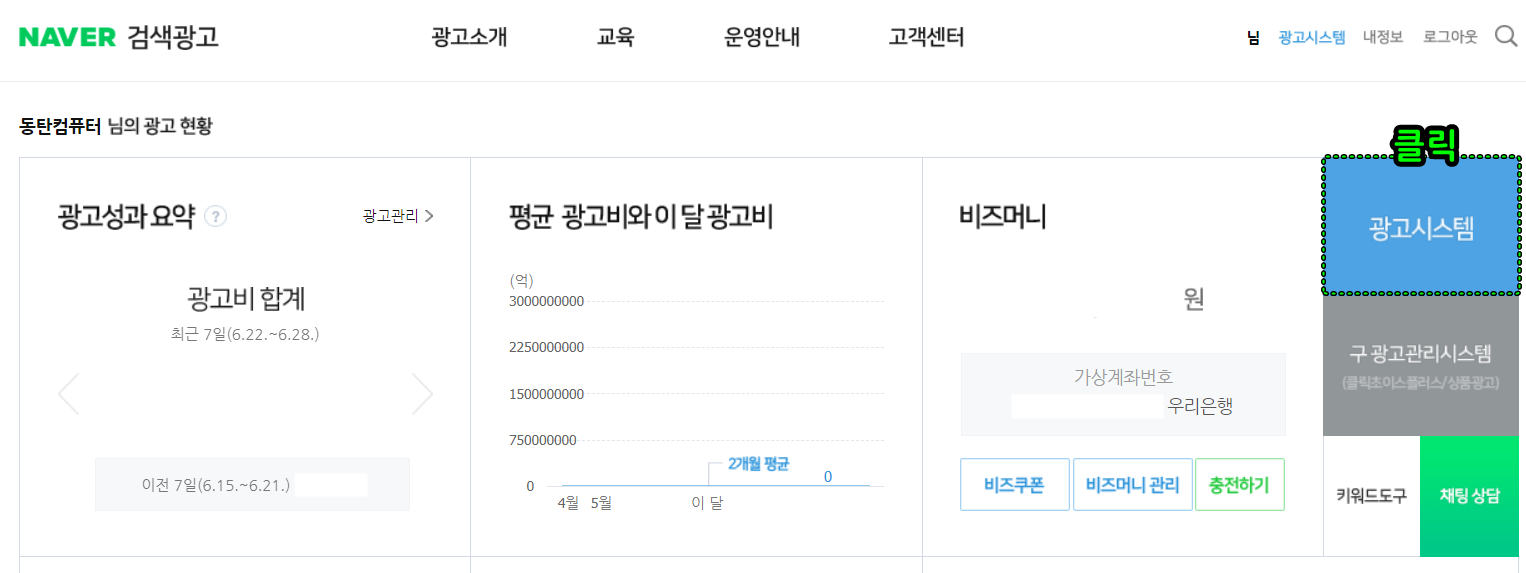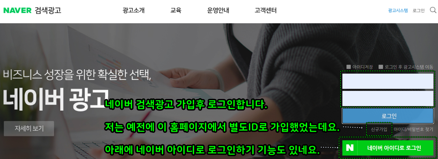 1. 네이버 검색광고 홈페이지에서 회원가입을 합니다.