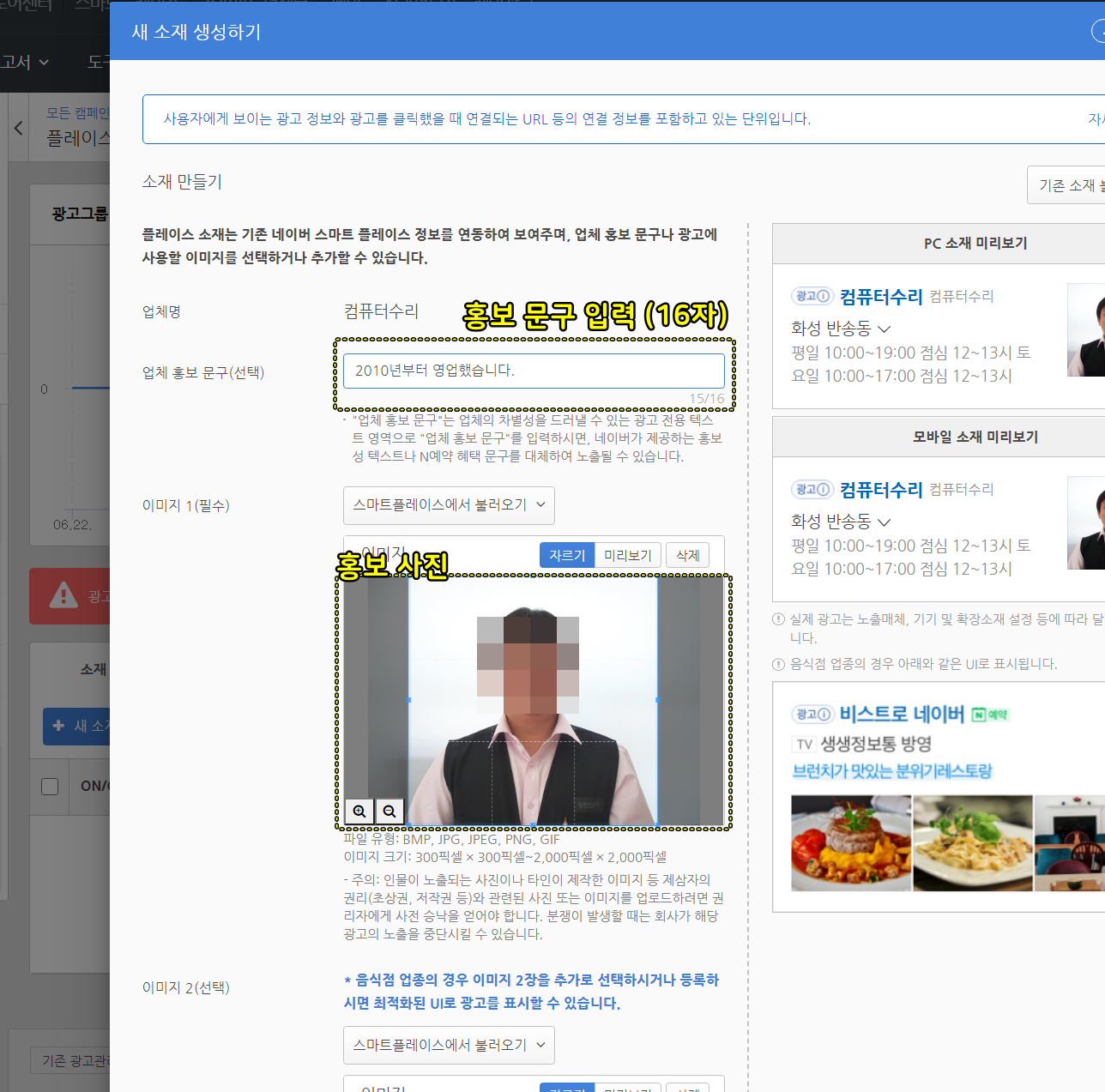 6-2. 광고에 노출될 소재를 만드는 과정입니다.