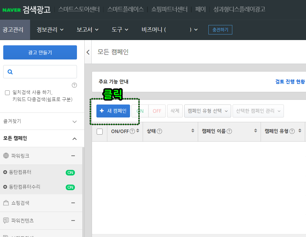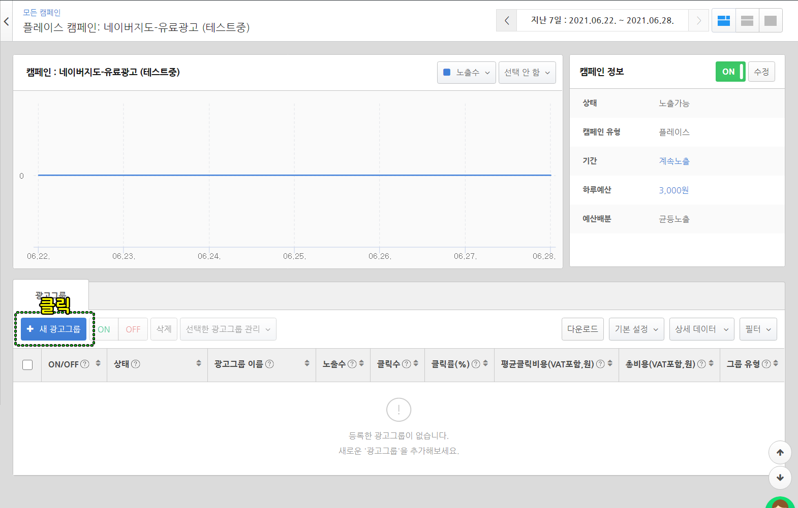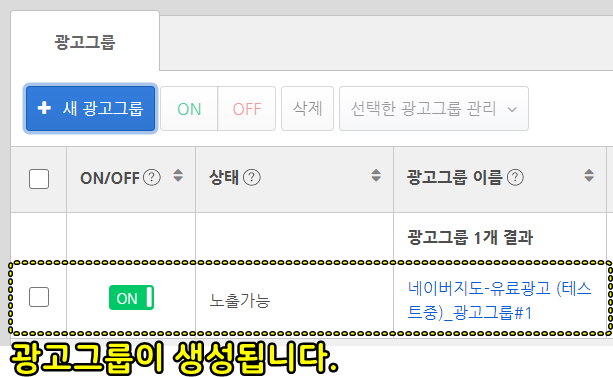 4-1. 캠페인을 클릭하고 들어가서 => 새 광고그룹 만들기