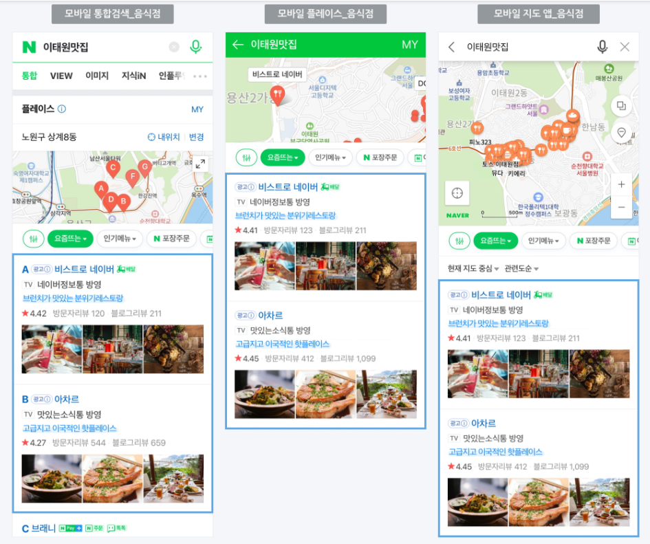 [ 광고의 형태 ] PC, 모바일, 지도앱 등에 상위 노출됩니다. "광고!"로 붙습니다.
