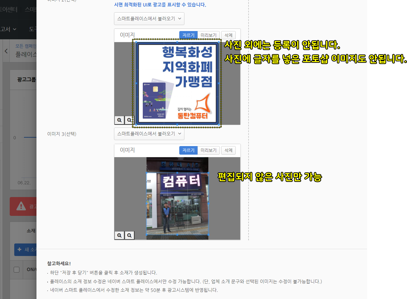 => 포토샵이나 일러스트로 글자를 넣은 그림은 광고 소재로 사용이 안됩니다. => 거절됨
