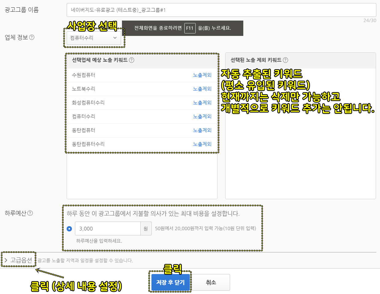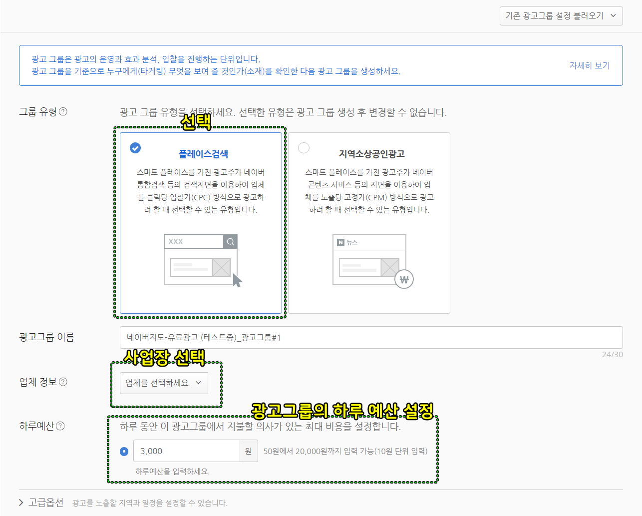 저도 그룹 만들고 쓰는 기능은 일일 예산, 노출지역, 노출 성별 등만 사용하고 있습니다.