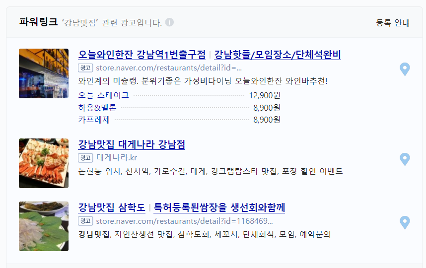 기존의 지도와 이질감이 없어서, 광고인지 구분이 쉽지 않네요. 관리청의 경고를 받을 수도 있겠다 싶습니다. 광고와 광고가 아닌 것이 명확하게 구분해야 되는 걸로 알고 있는데요. 아래는 키워드 광고 = 파워링크는 박스로 구분하고 배경색도 바뀌고 상단에 광고라고 표기도 되어있는데 지도는 "광고!"=> 요렇게만 표기를 해놔서 광고 구분이 잘 안되네요.