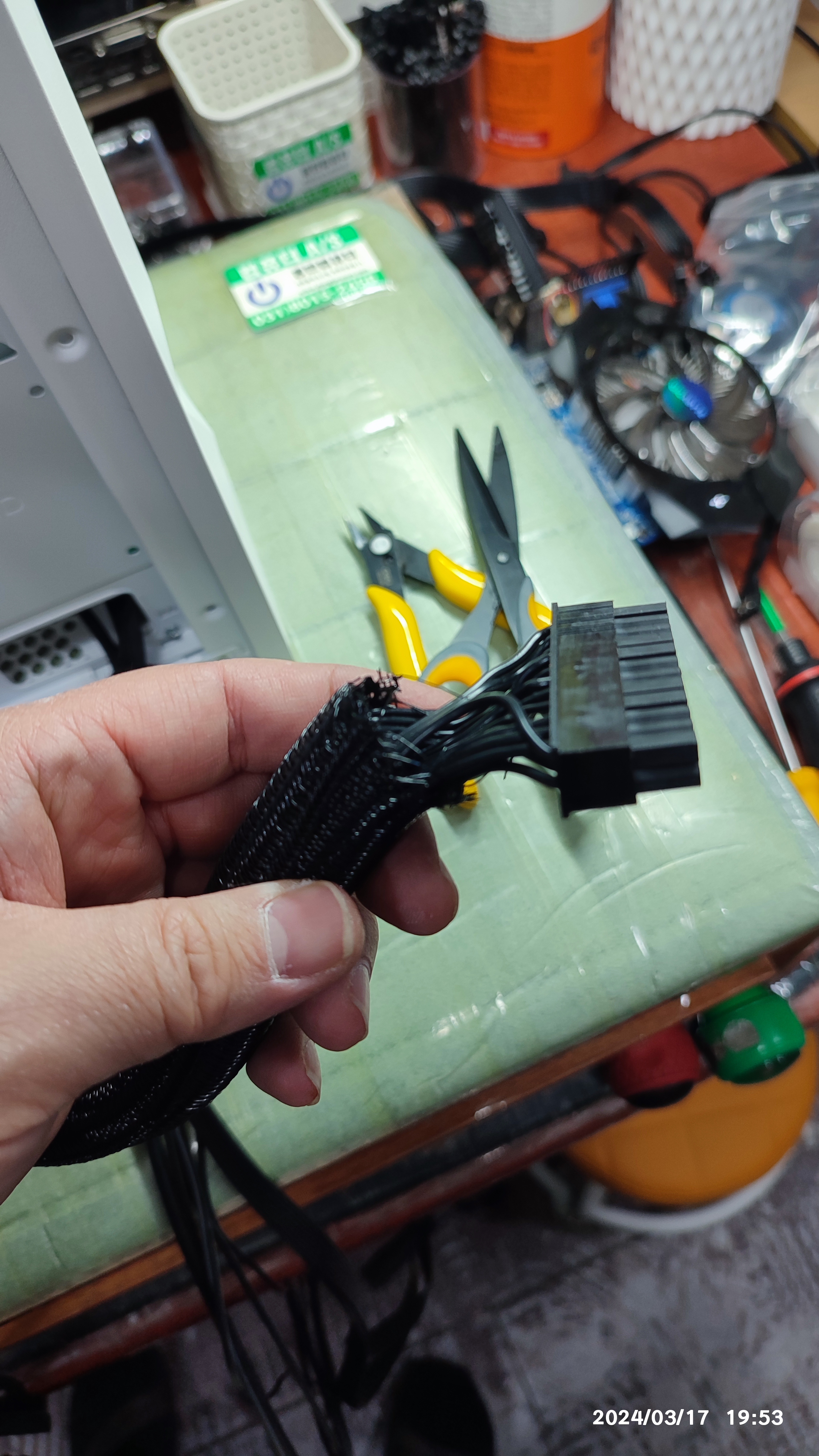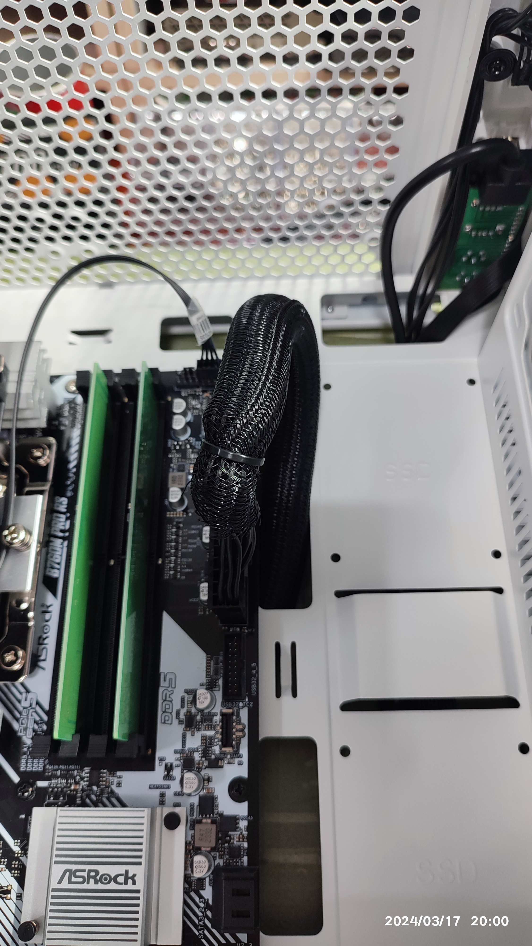 알리에서 구입한 케이블 정리할 수 있는 제품인데요. 생각나서 선 정리할 때, 한 번 써봤습니다. 제가 사용하는 파워서플라이가 쿨러마스터 MWE 600W 제품인데요. 이 제품이 케이블의 덮개가 없이 전선만 있는 제품이라서 중간에 케이블 타이라도 묶어주지 않으면 지저분한 케이블입니다. 그래서, 아래의 사진처럼, 메쉬형 케이블 커버를 씌워봤습니다. 케이블 마무리가 기성품처럼 안 돼서, 추가 작업(수축 튜브)이 필요하지만, 나름 괜찮은 제품인 거 같습니다.