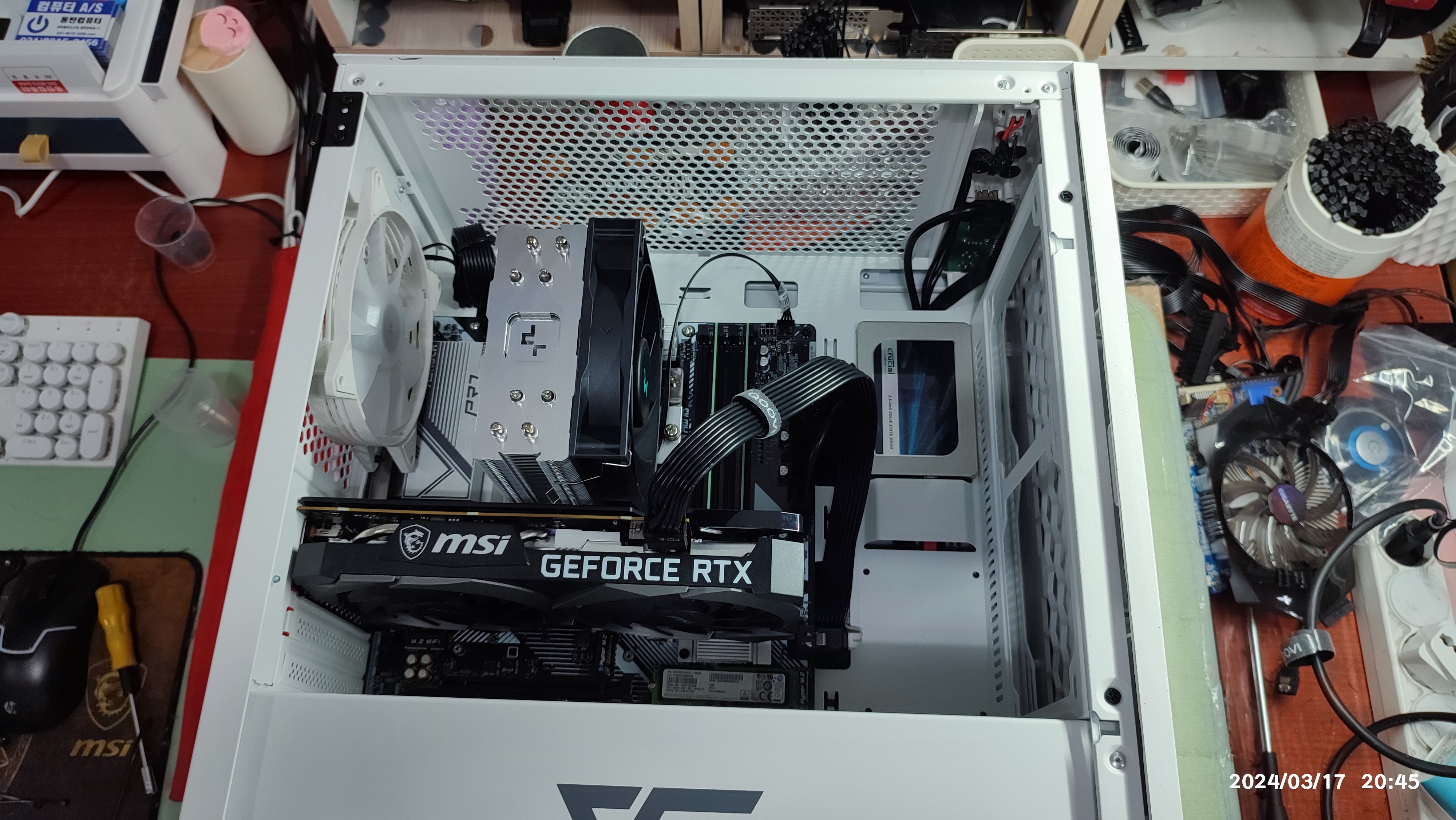 오랜만에 제 컴퓨터를 업그레이드하기 위해서 케이스 교체를 진행하고 있습니다. 인텔 14세대 i5-14600K + ASROCK B760M Pro RS로 업그레이드할 예정인데요. 기존에 사용하던 케이스(다크플래쉬 DK200) 크기가 작아서 케이스도 조금 큰 제품으로 업그레이드했습니다. CPU 쿨러는 딥쿨 AG400으로 조립했습니다.