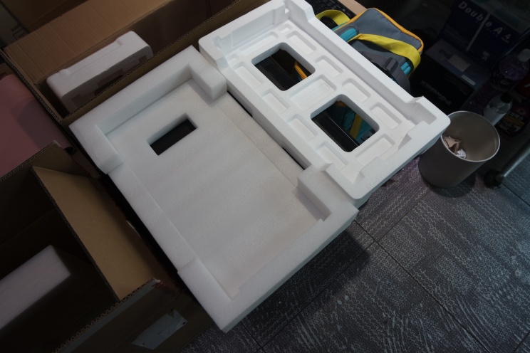 그리고 일반 스티로폼으로 케이스를 받아서 오픈하면, 정전기가 생기지만, 이렇게 스펀지형으로 포장된 제품은 정전기가 거의 안 생깁니다. 비닐을 벗길 때, 약간 발생할 수도 있겠지만 거의 잘 안 생겨서 좋습니다. 그리고 스펀지 중간에 구멍을 뚫어둔 곳이 보입니다. 이 부분은 박스 손잡이가 들어가는 부분입니다. 그래서, 박스의 손잡이와 위치를 맞춰주면 케이스를 들고 이동하기가 편합니다.