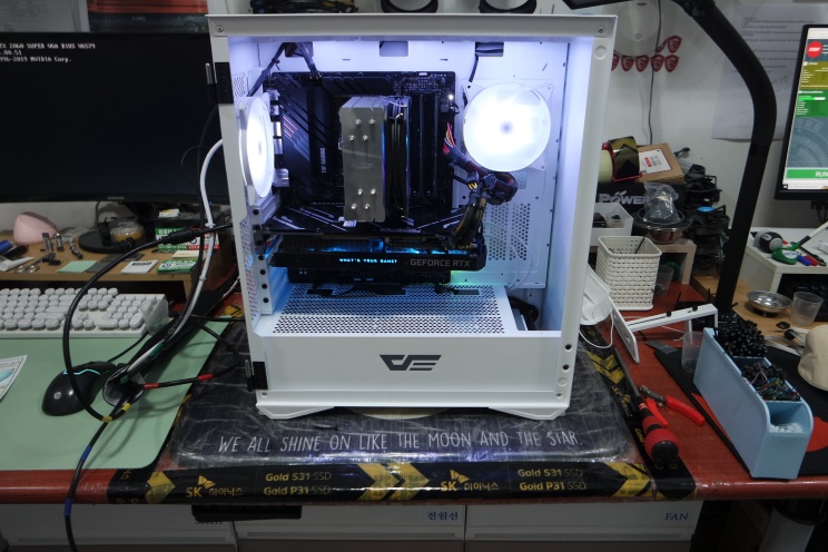 다크플래시가 케이스르 잘 만들어서 인기가 많은 거 같습니다. 외관이 깔끔하고 뒤면이 넓어서 선정리하기가 좋습니다. 물론, 케이스 팬이 많거나 수랭 쿨러를 장착하면 정리할 선들이 너무 많아서 깔끔한 선정리하기는 어렵긴 하지만, 뒤판이 좁은 케이스보다는 조립하기 낫습니다. (빅타워 케이스는 너무 크고요.)