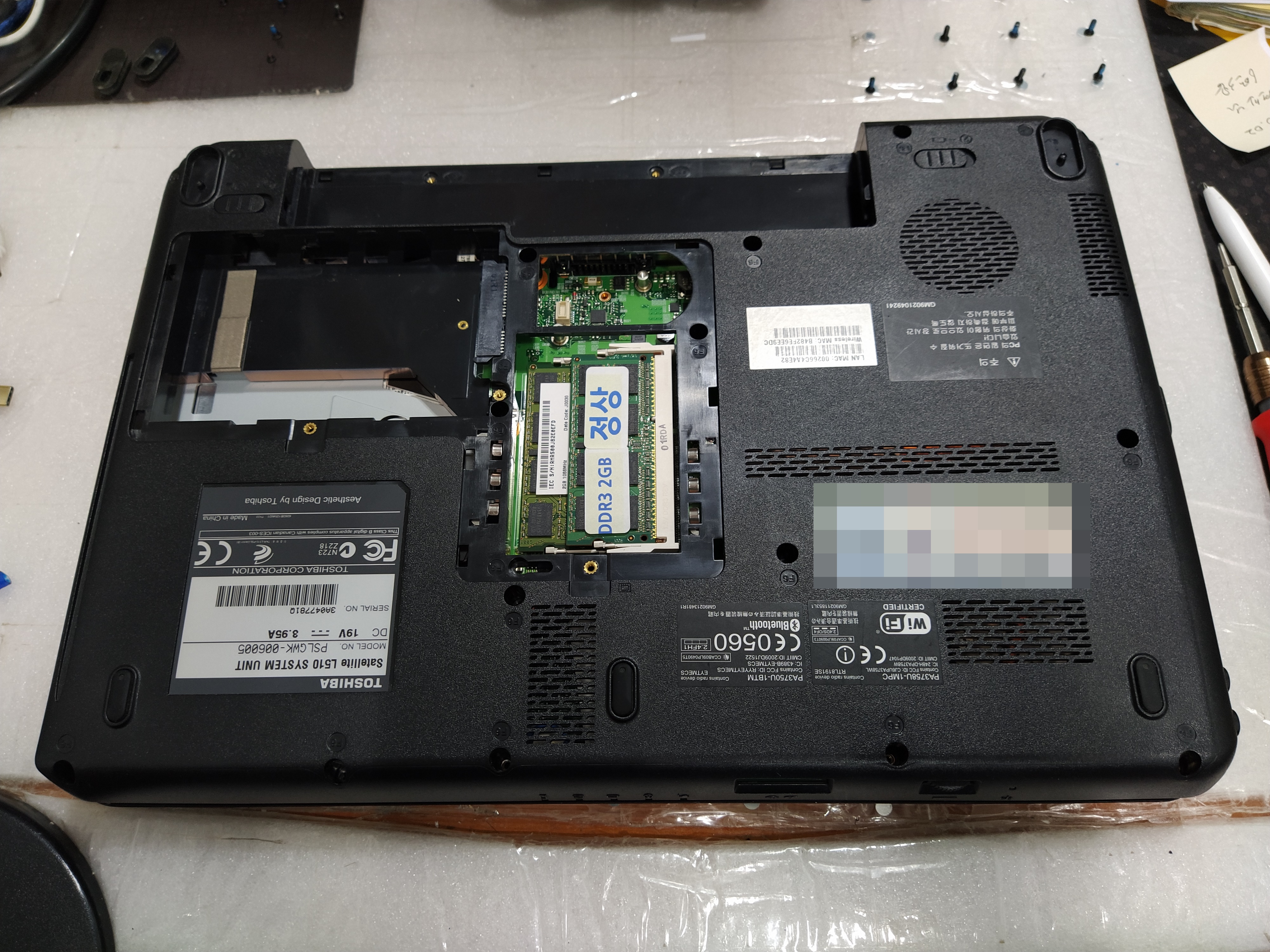 아래는 도시바 새틀라이트 L510 (상세 모델명 : PSLGWK-006005)의 분해 과정을 사진으로 남겨놨습니다.