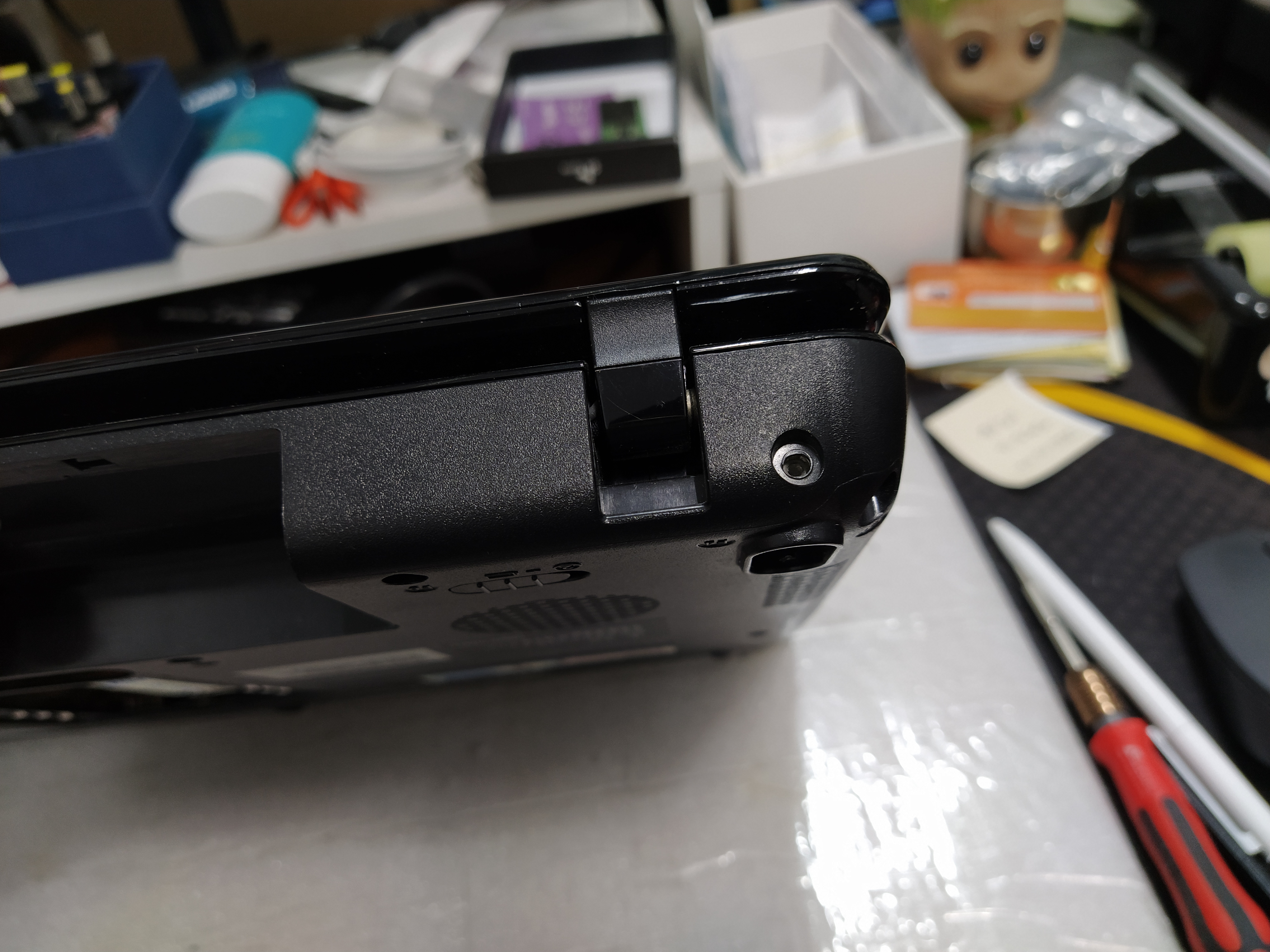 간혹 구형 모델의 노트북은 노트북 미끄럼(충격) 방지패드에 나사를 숨겨두는 모델도 있는데요. 이 모델은 숨겨진 나사는 없었습니다. 다만, 특이하게 노트북 힌지 뒤편에 나사가 조여진 특이한 모델이네요. 아래 사진 참조, 노트북 뒤편의 나사도 풀어야 분해가 가능한 모델입니다. (주의) => 키보드를 분해하고 숨겨진 나사를 제거해야 완전 분해가 됩니다. 키보드 분해하는 방법은 아래의 사진에서 이어집니다.
