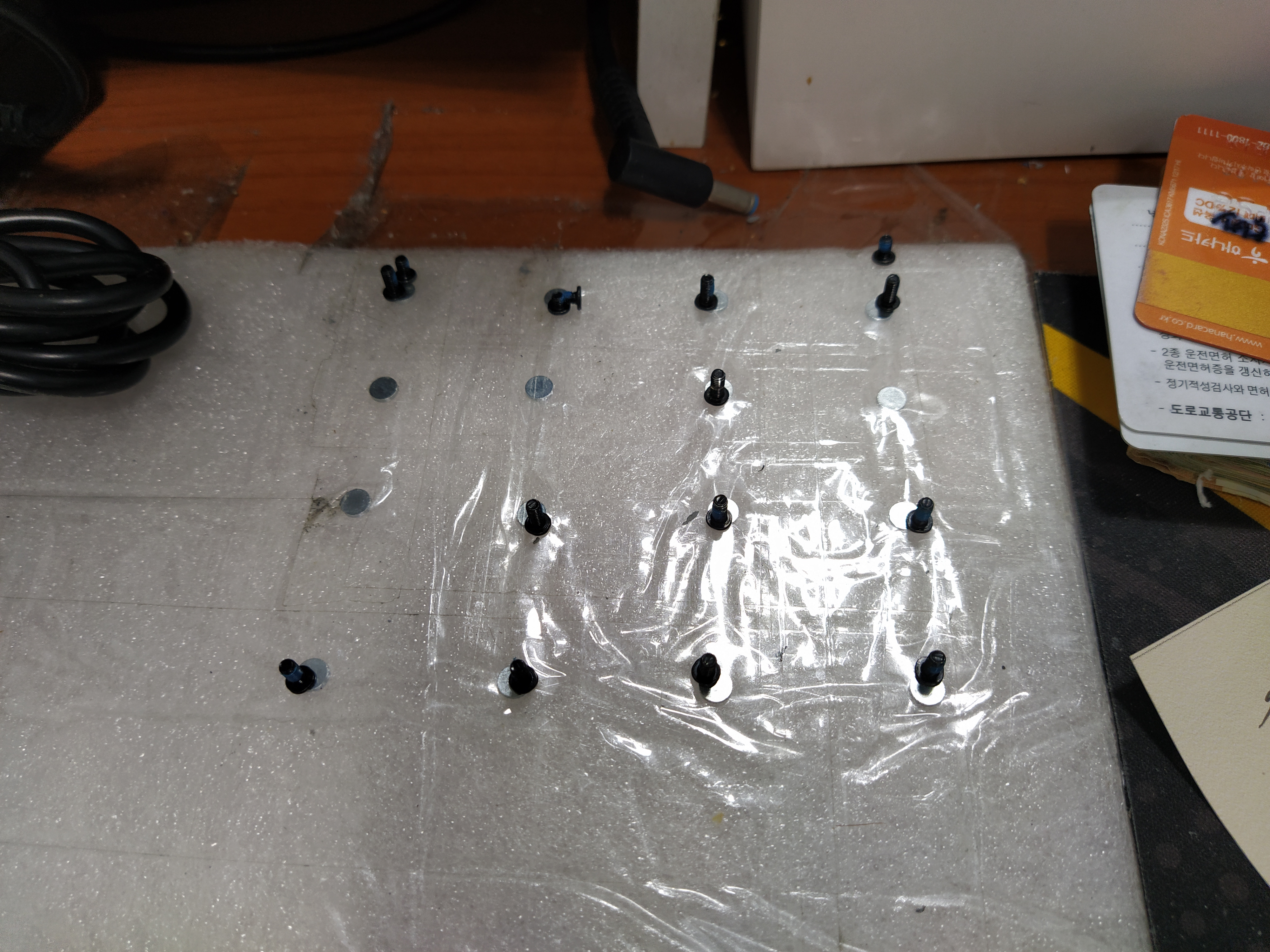 뒷면의 나사를 제거하고 한 곳에 잘 모아뒀습니다. 노트북의 나사 위치와 유사하게 분류해서 모아뒀으니 참고 바랍니다. 나사의 굵기, 길이도 제각각이라서 위치를 잘 파악해서 보관해야 잘못 체결하지 않습니다.