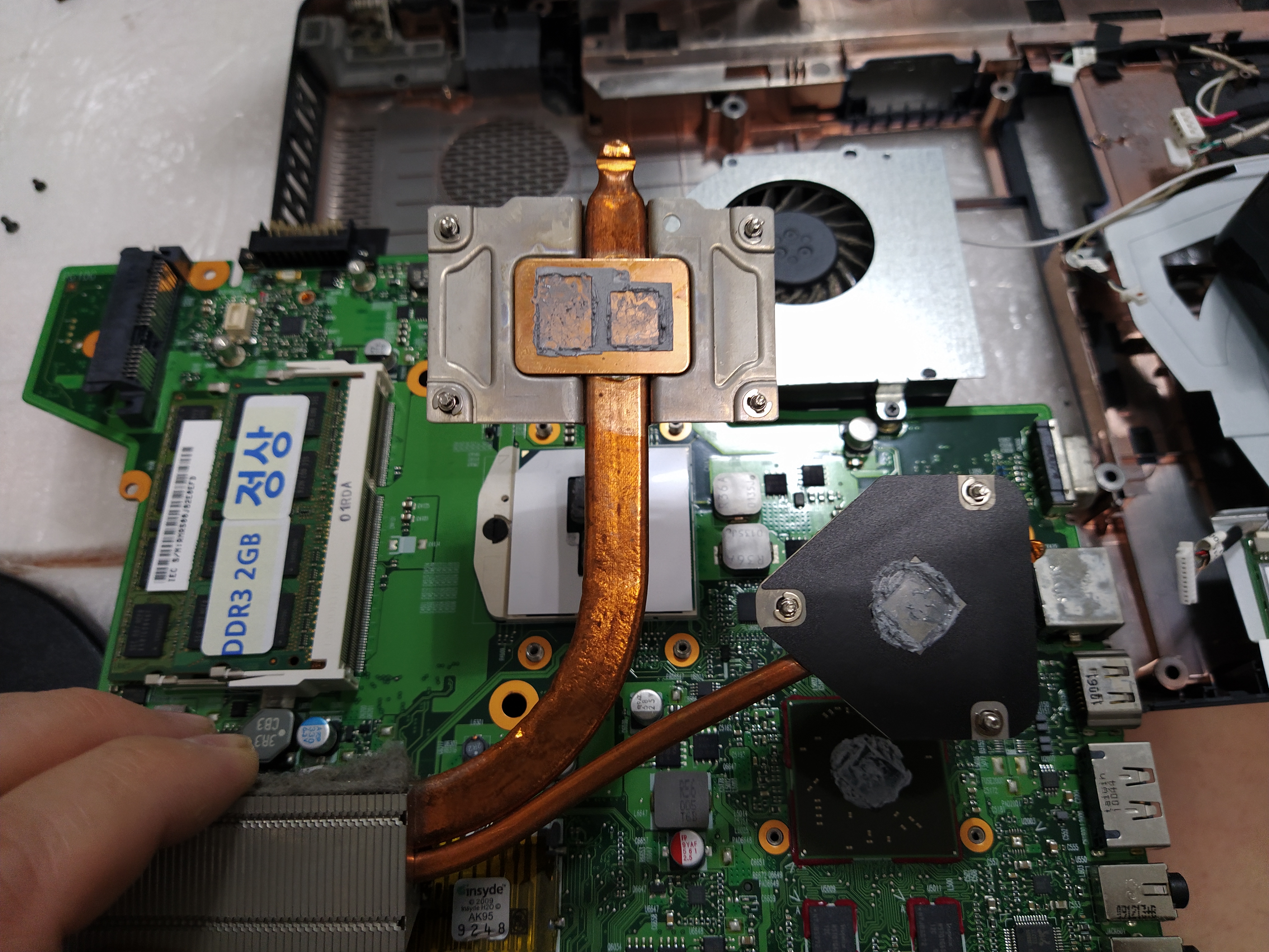 CPU, 그래픽 칩셋 방열판을 재조립했습니다.