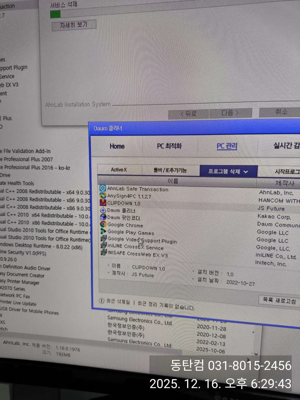 설치된 프로그램을 정리하면서, 어떤 프로그램이 문제인지 찾고 있는데, 보통 이렇게 프로그램 찾아서 삭제하는 개별 수리는 어렵고 원인을 찾아보기 위한 시도입니다. 프로그램과 프로세스를 삭제하면서, 컴퓨터가 정상적으로 동작되는지 확인하는 과정이기도 합니다.