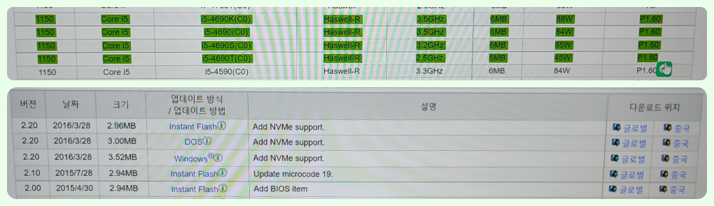 위의 컴퓨터의 메인보드는 2014년~2015년도에 생산된 메인보드입니다. 신품은 더 이상 구하기가 어렵습니다. 저도 중고로 한 두 개 정도 구비해놓은 H18M 메인보드입니다. 제 CPU와 파워서플라이 메모리로 메인보드가 정상적으로 구동되고 있는지 확인하고 있습니다. 바이오스 버전도 최신 버전인지 확인했습니다. 중고 부속 단품은 구입 및 판매하지 않습니다. (수리용 자재)