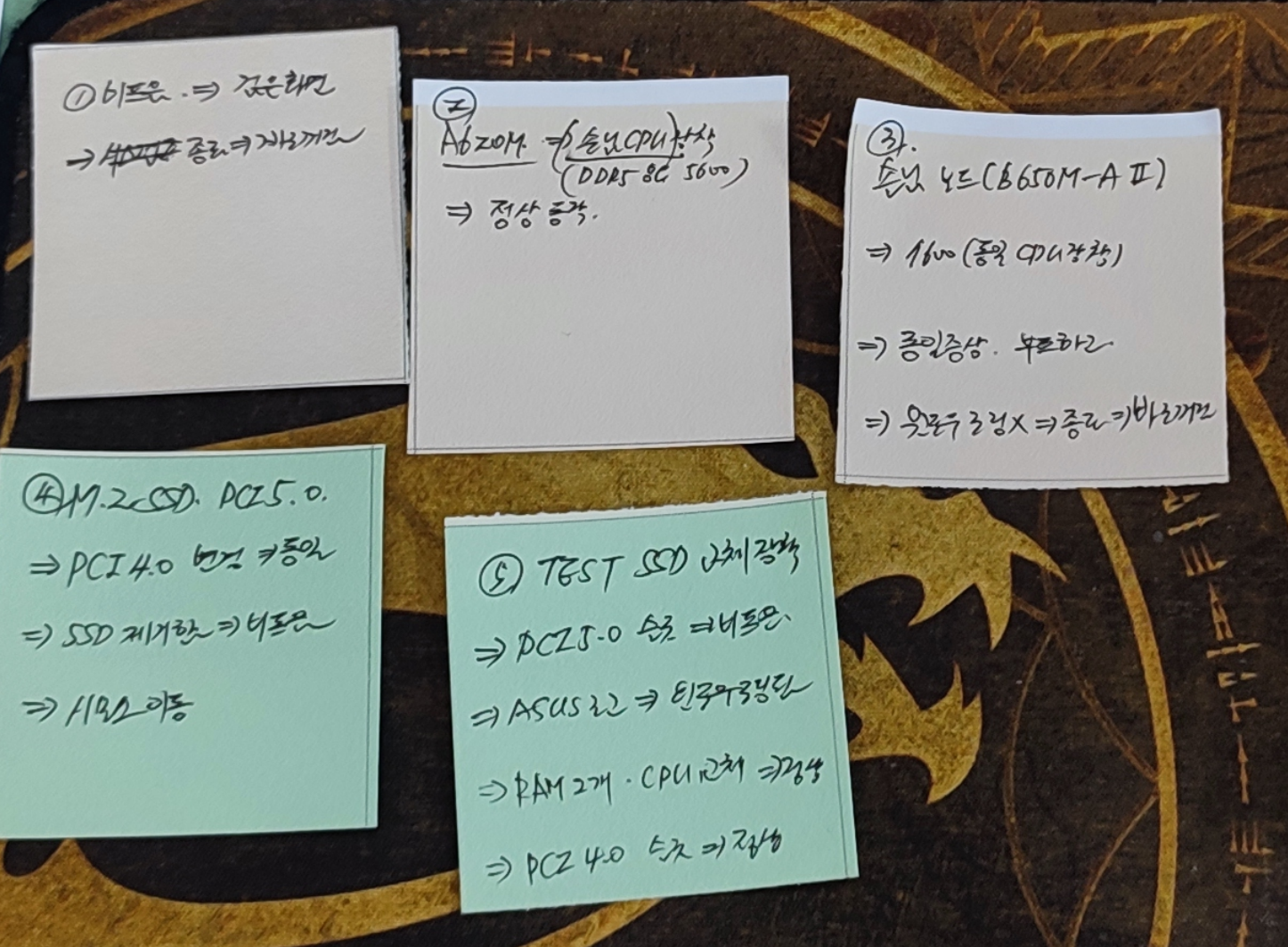 위와 같이 원인을 찾아드리고 메인보드 서포트 볼트 미체결한 부분도 수정해서 출고했습니다. 이렇게 셀프 조립한 컴퓨터의 불량 원인을 찾아드리는 작업은 조립 대행보다 작업량이 많습니다. 기본적으로 부품 분해 후 재조립이 필요하기도 합니다. 덤으로 부품 교차하면서 점검도 해봐야 합니다.