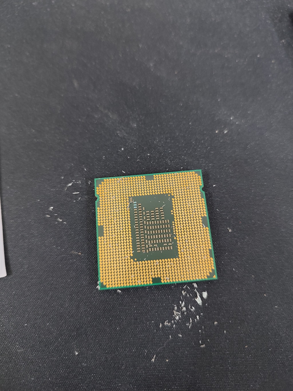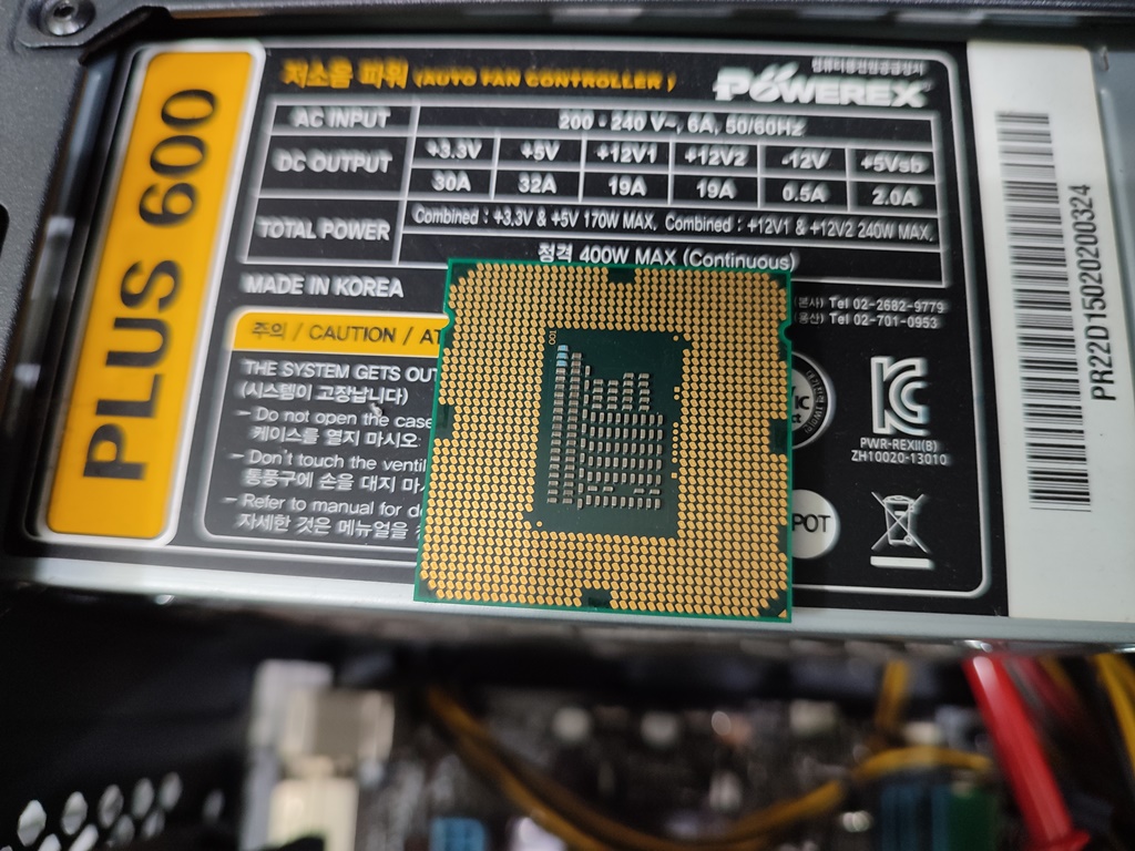 아래와 같이 CPU 뒤면이 노랗게 변색된 CPU가 입고됐습니다. i5-2500K 제품입니다.