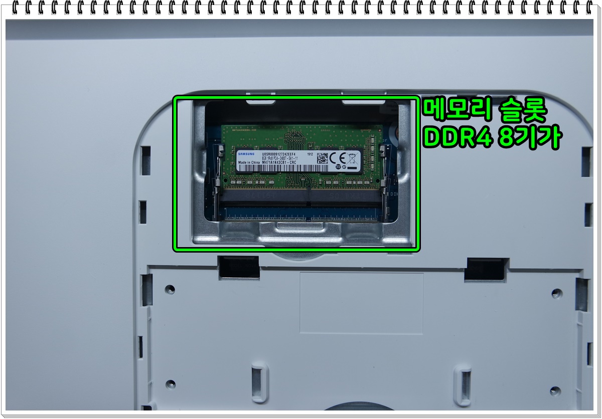 메모리 슬롯이 먼저 눈에 띄네요. DDR4 8기가 제품이 장착되어 있었고 빈 슬롯이 하나 더 있어서 메모리 업그레이드는 용이해 보였습니다. (관련글 : https://blog.naver.com/dongtancom/221746507479 )
