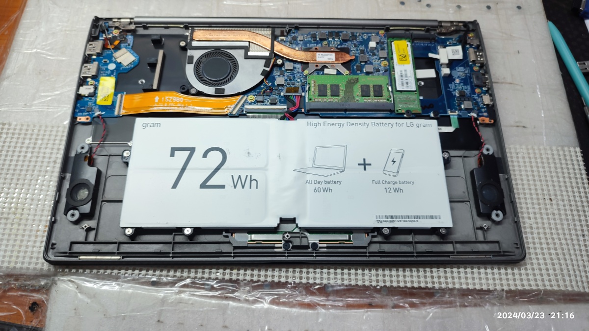 15Z980-GA56K LG그램 노트북 (2018년) 메모리 업그레이드 LG 그램 노트북을 사용하고 있는데 메모리 용량이 부족해서 업그레이드를 위해서 찾아주셨습니다. 노트북을 분해하고 메모리 추가 작업을 진