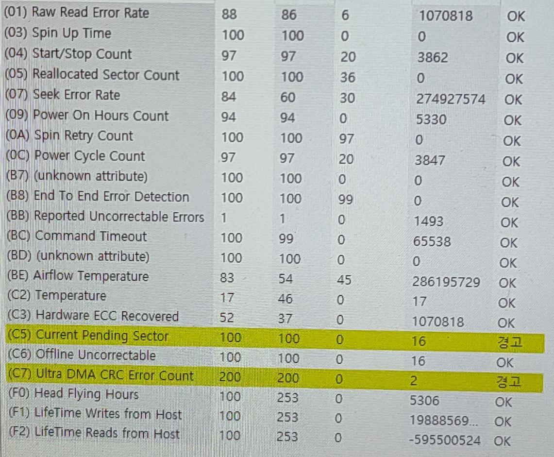 제품의 모델명만으로는 SSD인지 HDD인지 구분하기가 쉽지 않은 면이 있는데요. 하드디스크의 용량으로도 구분할 수도 있습니다. 장치관리자에 잡히는 하드디스크가 1개일 경우 C, D, E 등의 저장공간의 총용량이 500기가~ 이상이면, 대부분의 경우에 하드디스크일 경우가 많습니다.