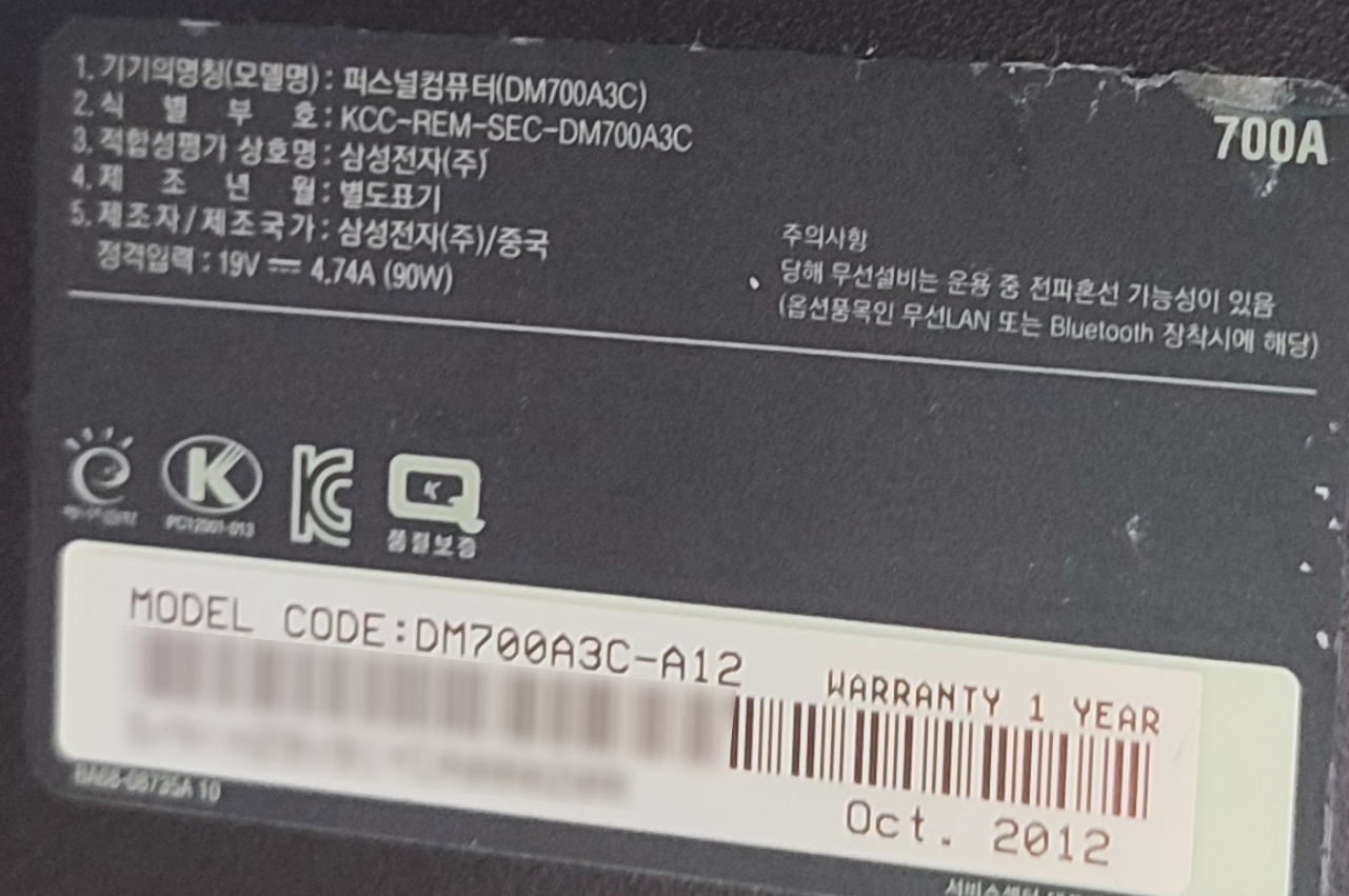 삼성일체형컴퓨터 모델은 DB701A4K-K03/C 모델이네요. 2016년 09월 제조 제품으로 그렇게 오래된 모델은 아닌데 윈도우7 PRO 정품이 설치된 제품이네요. 회사나 기업등에서 사용하던 제품이였을수도 있겠다 싶습니다.