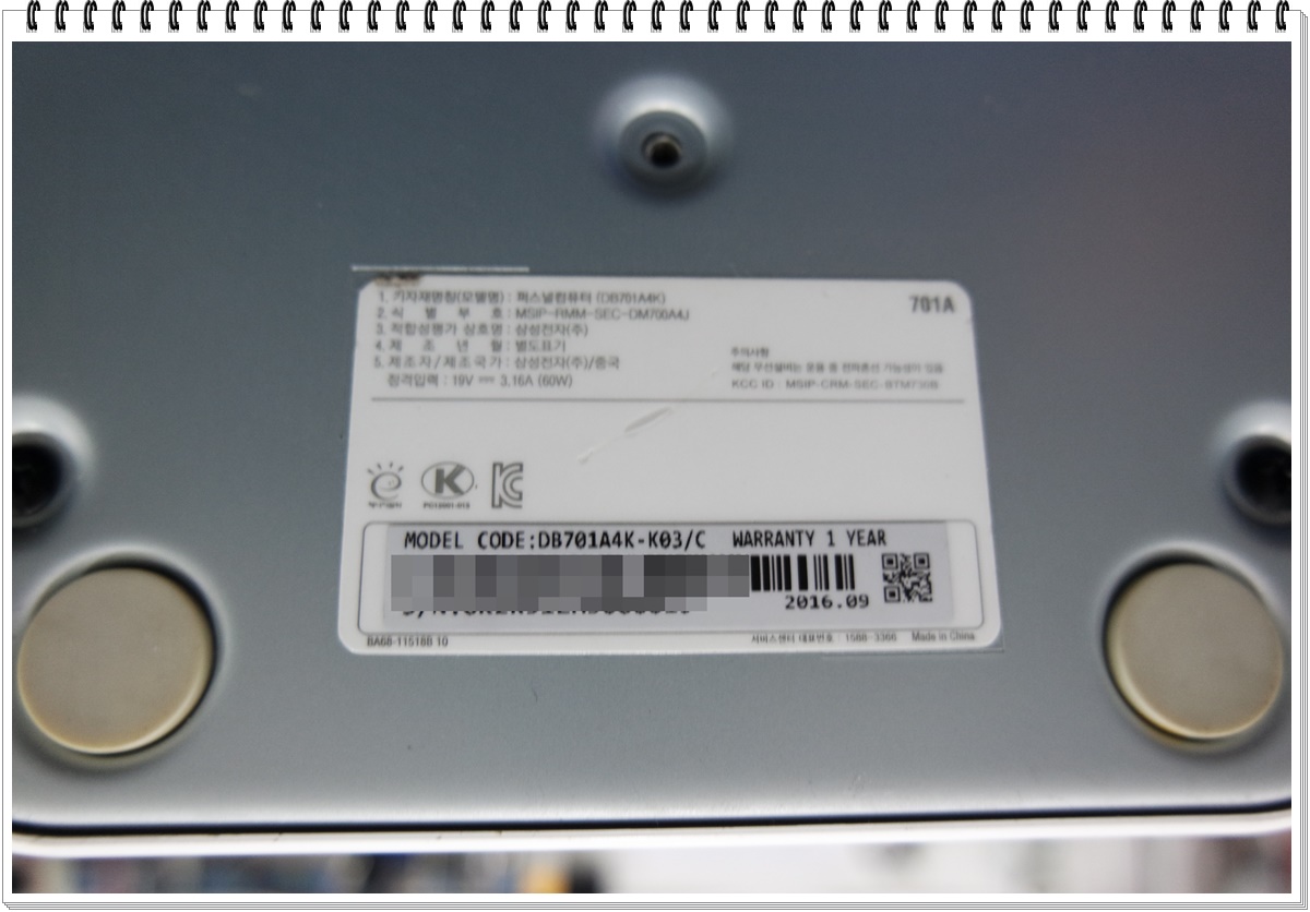 삼성일체형컴퓨터 모델은 DB701A4K-K03/C 모델이네요. 2016년 09월 제조 제품으로 그렇게 오래된 모델은 아닌데 윈도우7 PRO 정품이 설치된 제품이네요. 회사나 기업등에서 사용하던 제품이였을수도 있겠다 싶습니다.