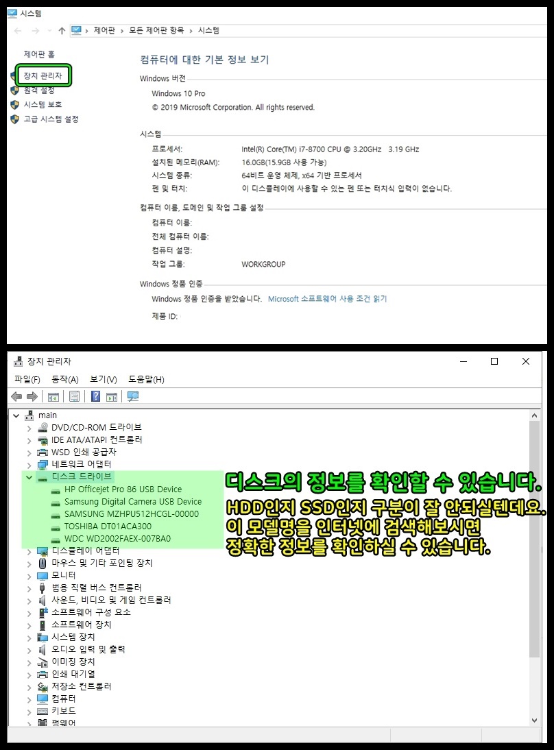 내컴퓨터가 SSD가 들어있는지 HDD가 들어있는지 확인하는 방법은