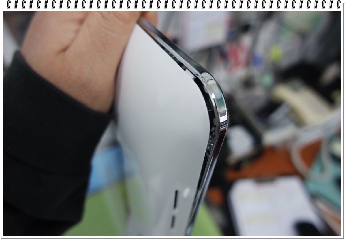 분해할 수 있는 틈이 잘 안보이기 때문에 얇은 헤라로 틈을 찾아서 케이스의 껍질을 벗겨줍니다.