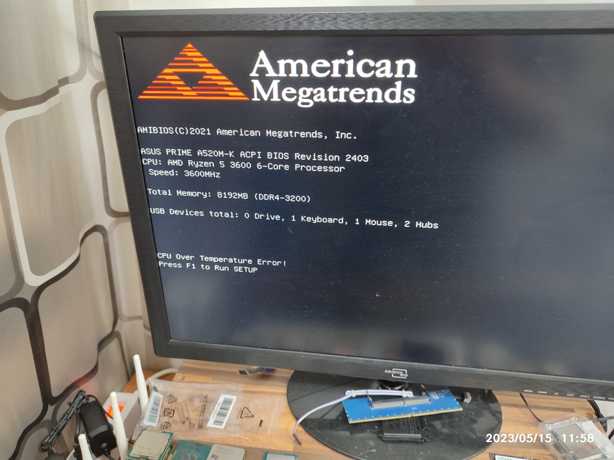 컴퓨터 전원 끄고 팬 전원 다시 연결하고 켰더니, 쓰로틀링 해제되니 CPU Over Temperature Error가 뜨네요.