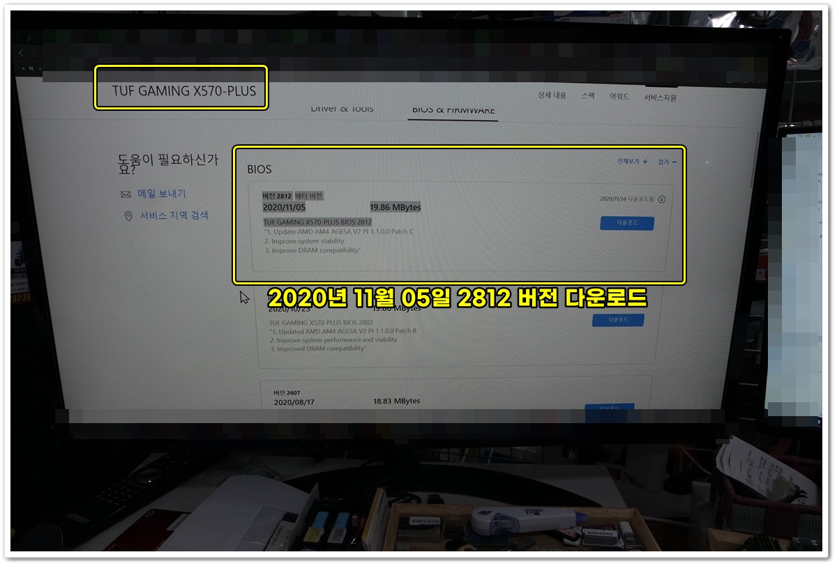 2020년 11월 20일 기준으로 최신 바이오스 버전은 2020년 11월 05일 내놓은 2812(베타버전)버전의 바이오스가 있습니다. 베타 버전이기는 하지만, 최근 출시된 CPU라서 베타 버전을 설치했습니다.