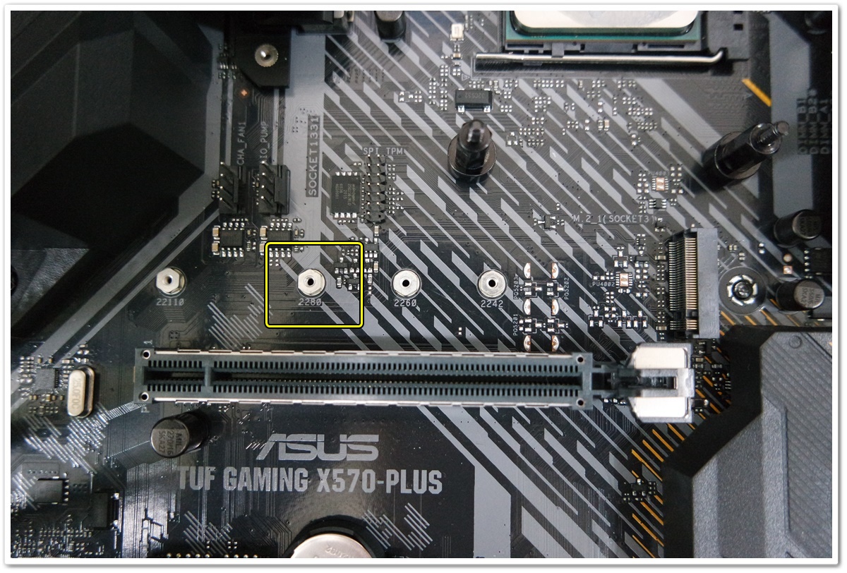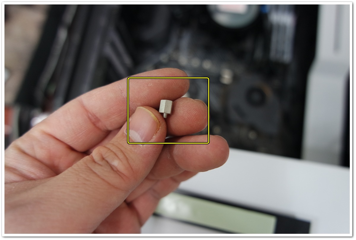 2280 이라는 숫자가 적힌 나사 구멍에 SSD를 고정하면 되는데요. 메인보드의 너트에 바로 고정하는 게 아니라, 서포트볼트를 먼저 체결한 다음에 고정 나사로 수평에 맞춰서 조립해야 좋습니다. SSD가 눌려진 상태로 사용해도 별다른 이상이 없으면, 사용해도 되겠지만, 이왕이면, 부속을 활용해서 수평을 맞춰서 사용하는 것이 좋지 않을까는 의견을 드립니다. 메인보드 부속을 다 안가져오셔서, 제 컴퓨터에서 서포트 폴트를 분해해서 SSD를 고정 시켰습니다.