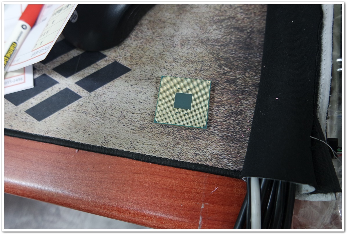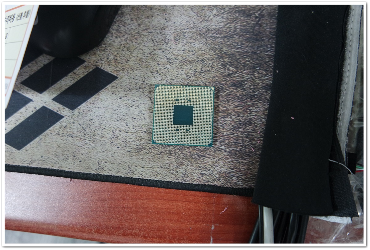 수랭쿨러를 제거하고 CPU의 핀 상태가 고른지 확인하고 있습니다.
