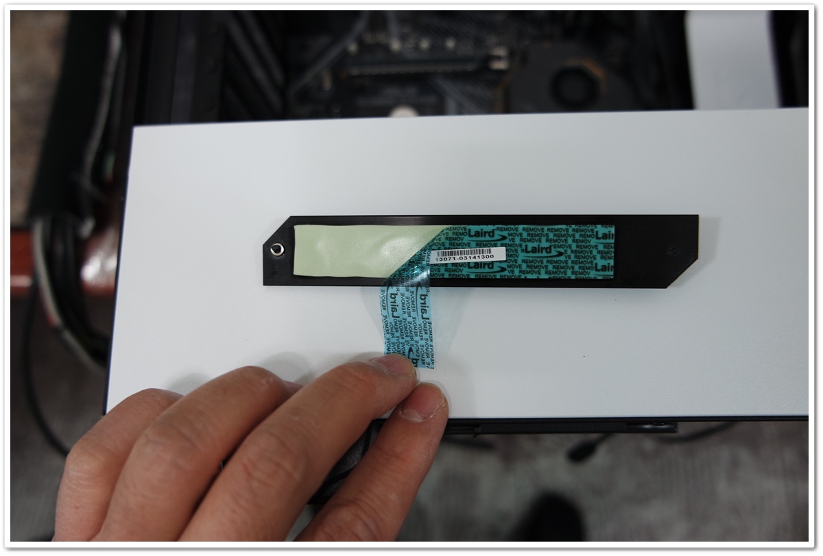 M.2 SSD의 발열을 잡아주기 메인보드 자체적으로 M.2 SSD 방열판을 제공되고 있네요. 하단에 있는 보호필름은 제거하고 SSD를 덮어줬습니다. (서멀패드가 제 역할을 못하면, 자칫 담요처럼, 열을 보관하는 역할을 할 수도 있어서 M.2 SSD의 온도 변화를 주기적으로 체크하면서 사용하면 좋을 거 같다는 개인적인 의견을 드리고 싶네요.)