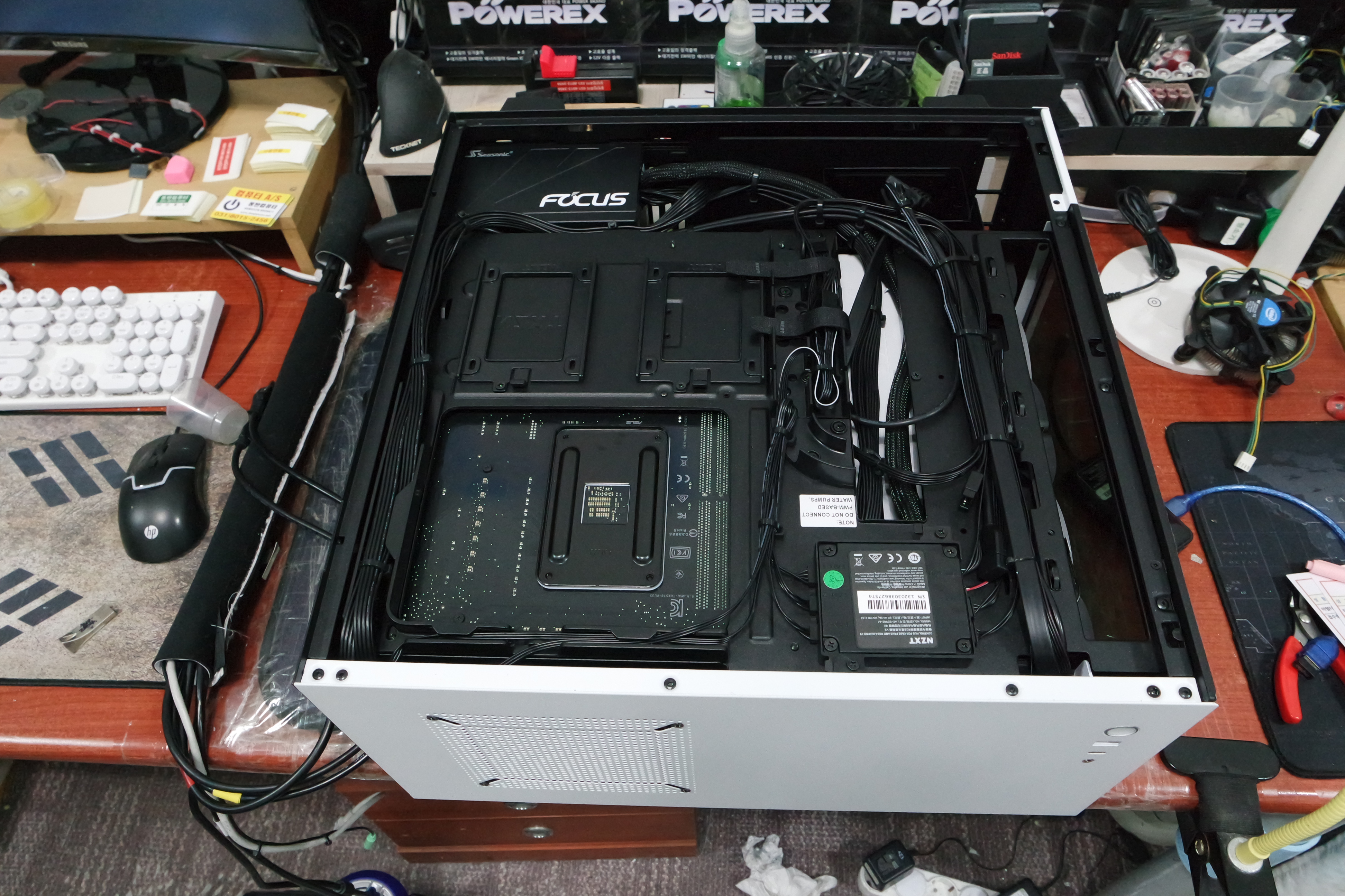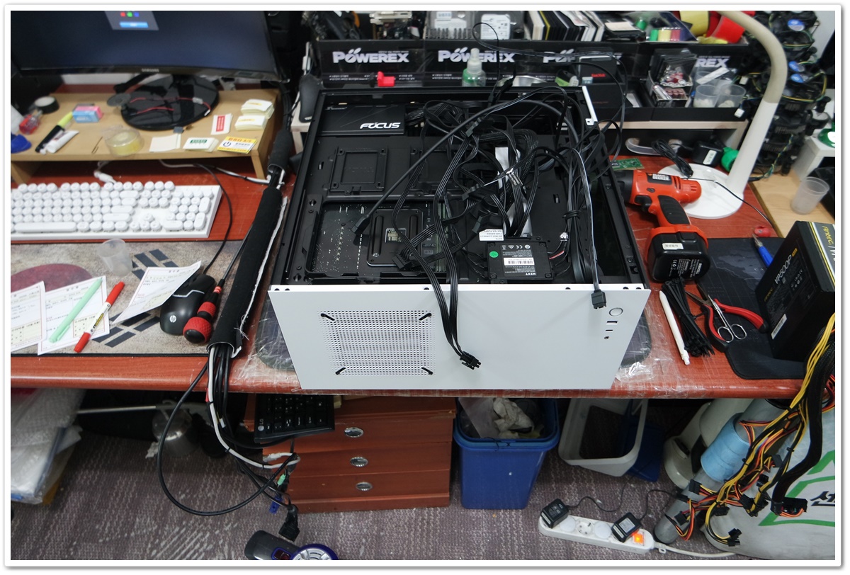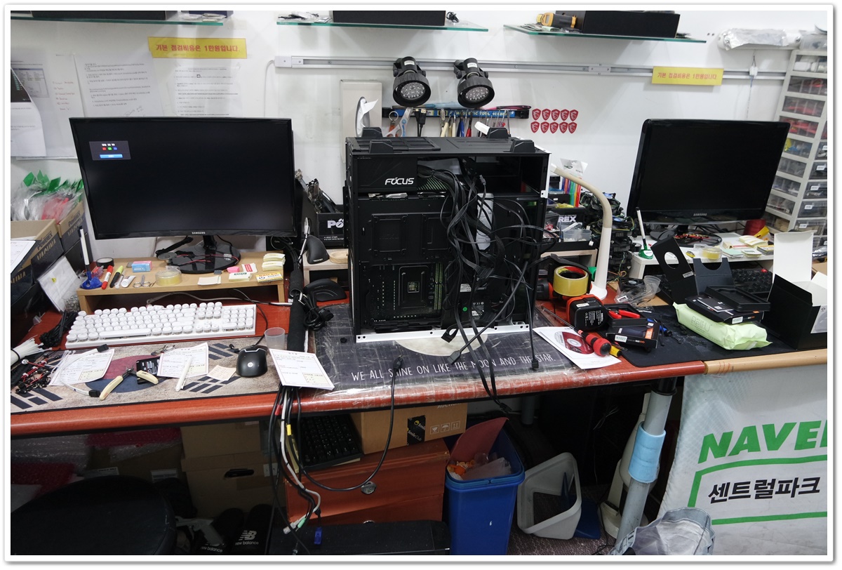 토요일은 영업시간도 짧고 방문하시는 고객님이 많은 날이라서 당일 일처리하기가 상당히 어려운 경우가 더러 있습니다. 특히, 이렇게 연결할 선이 많으며, 메인보드 기능이 많은 제품은 천천히 확인하면서 작업을 진행해야하기 때문에, 일반적인 컴퓨터보다 더 많은 시간이 필요합니다.