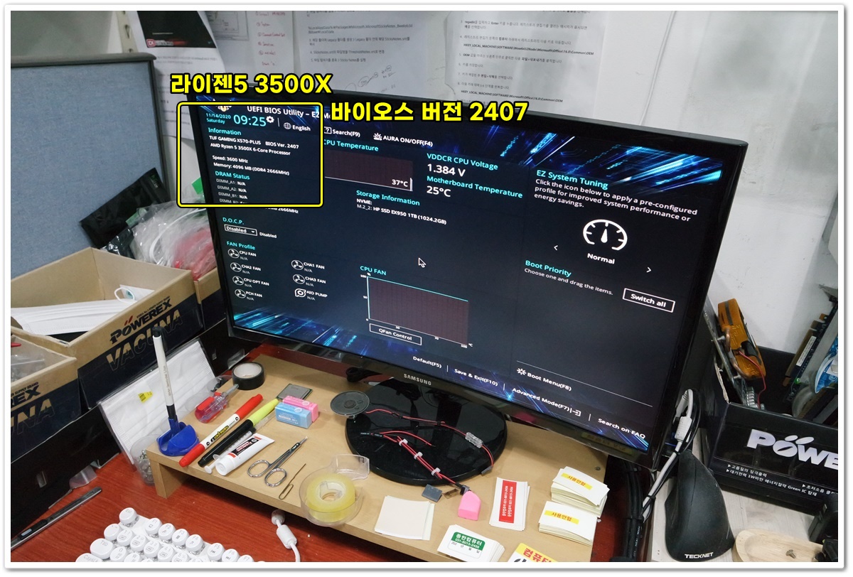 기본 삼성 메모리로 변경하고 CPU도 3500X CPU로 변경한 다음 부팅시도 중입니다.