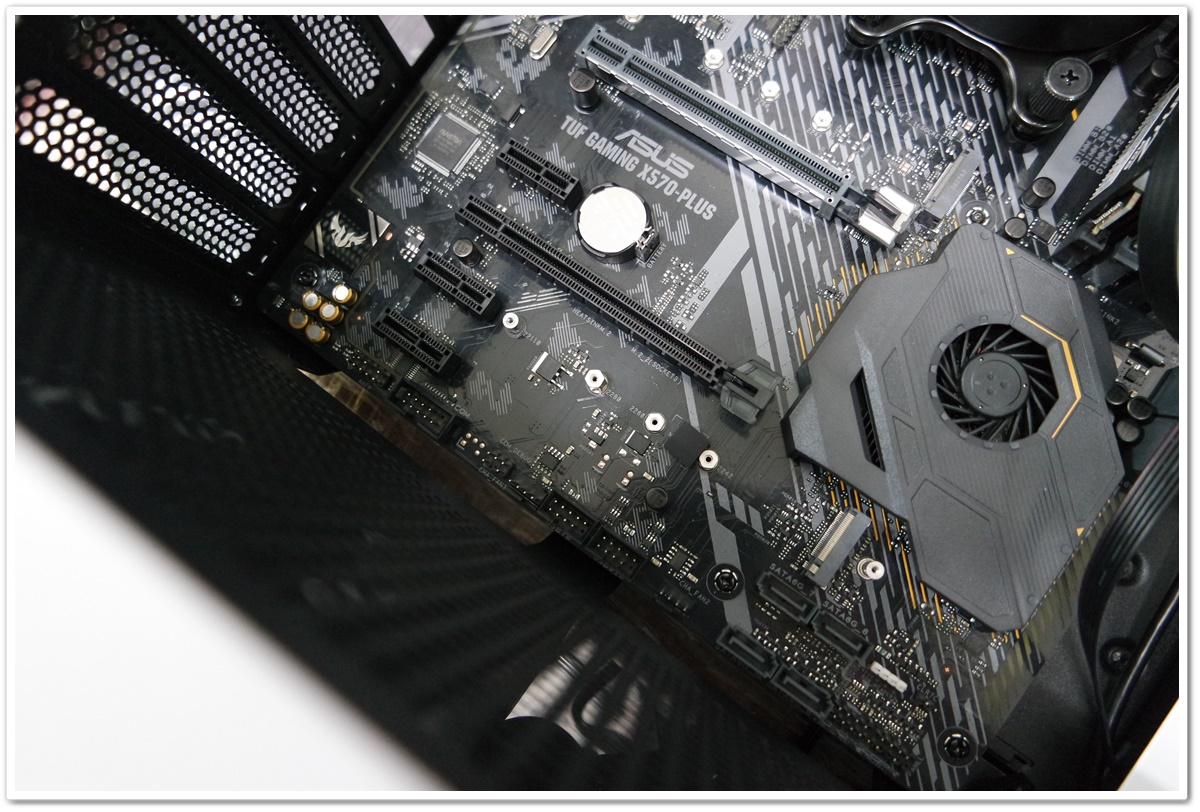 X570 메인 칩셋의 성능이 높아져서 그런지 칩셋 위에 방열판+팬이 달려있네요. 팬의 수명이 얼마나 갈지 궁금합니다. 저렇게 작은 팬은 나중에 내구성이 다되면, "앵앵"거리는 (팬 회전이 걸리는) 소리가 나는 경우가 있어서 나중에 교체가 용이하면 좋을 거 같습니다. 생김새를 봐서는 메인보드를 들어내야 교체가 가능할 거 같네요.