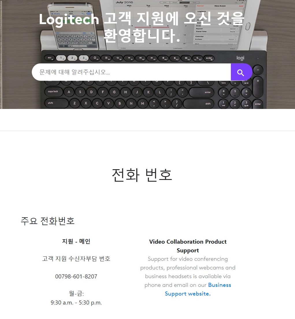 되도록이면, 홈페이지에서 신청해보려고 홈페이지에서 접수 메뉴를 찾아봤지만, 국산 홈페이지가 아니고 외국인이 만들어놓은 홈페이지라서 그런지 인터페이스가 깔끔하지 않아서 온라인 AS접수는 못했습니다. (아마도, 이메일 등으로 접수하는 방법인 듯 합니다.) 로지텍 서비스센터의 전화번호를 확인할 수 있습니다. 전화번호 찾는데도 여러 페이지를 눌러서 겨우 찾았네요. (AS 받기가 쉽지 않네요.)