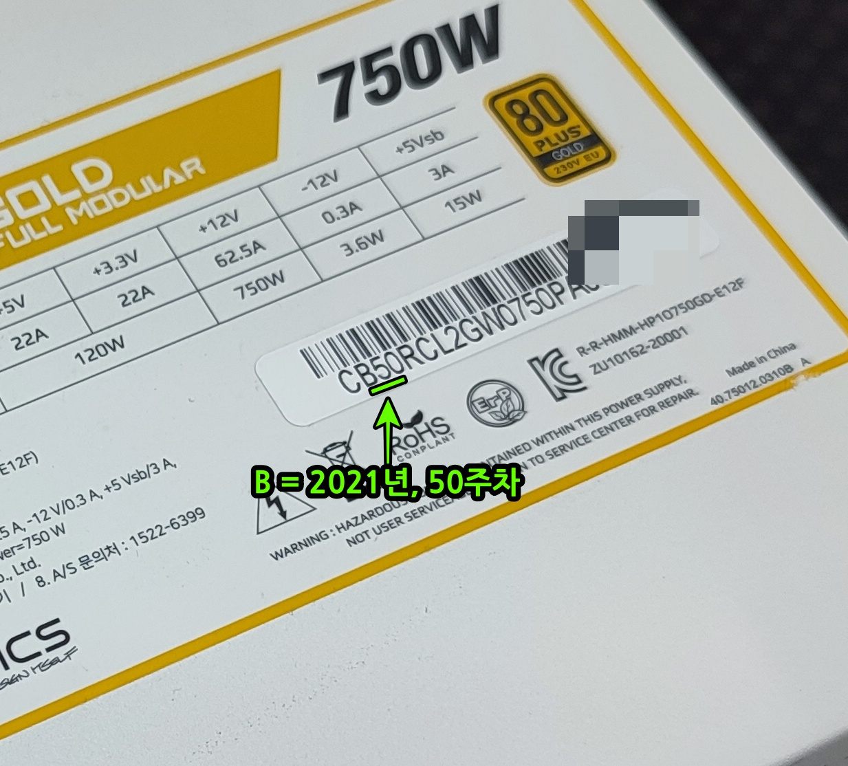 시리얼 넘버 : CB25XXXXX… 제품의 경우, 2021년 25주차 제품