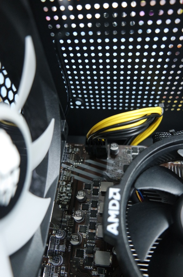 조금 더 큰 사진입니다. 나중에 하드디스크를 추가할 일은 잘 없지만, SATA전원선과 그래픽카드 보조전원선을 별도로 묶어뒀습니다.