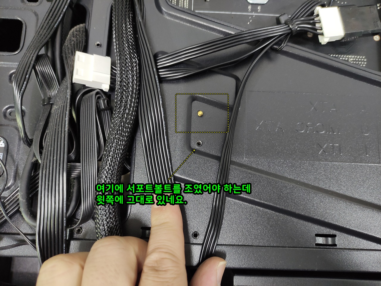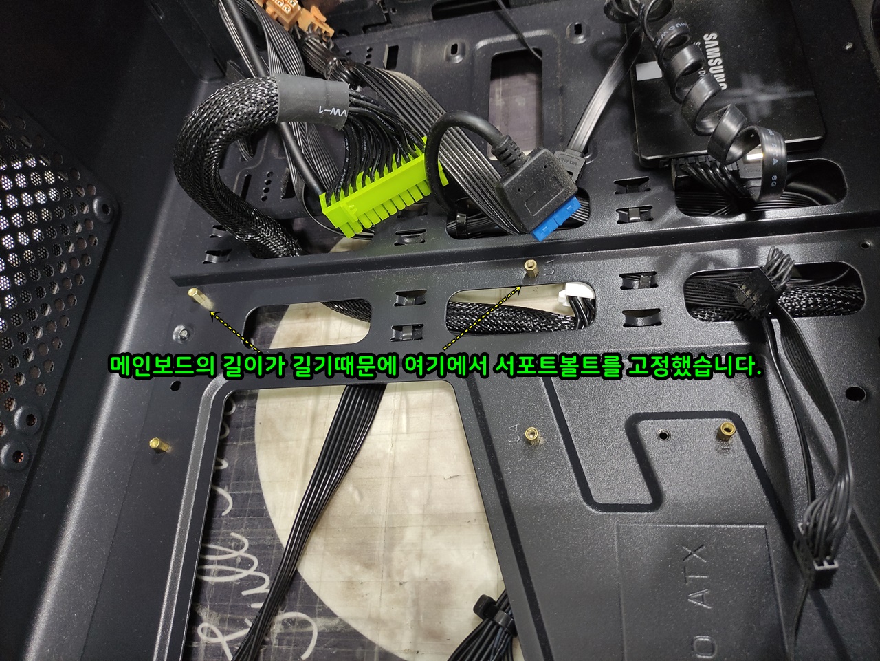 기판이 mATX 사이즈이지만 옆으로 길어서 추가로 서포트볼트를 체결했습니다.