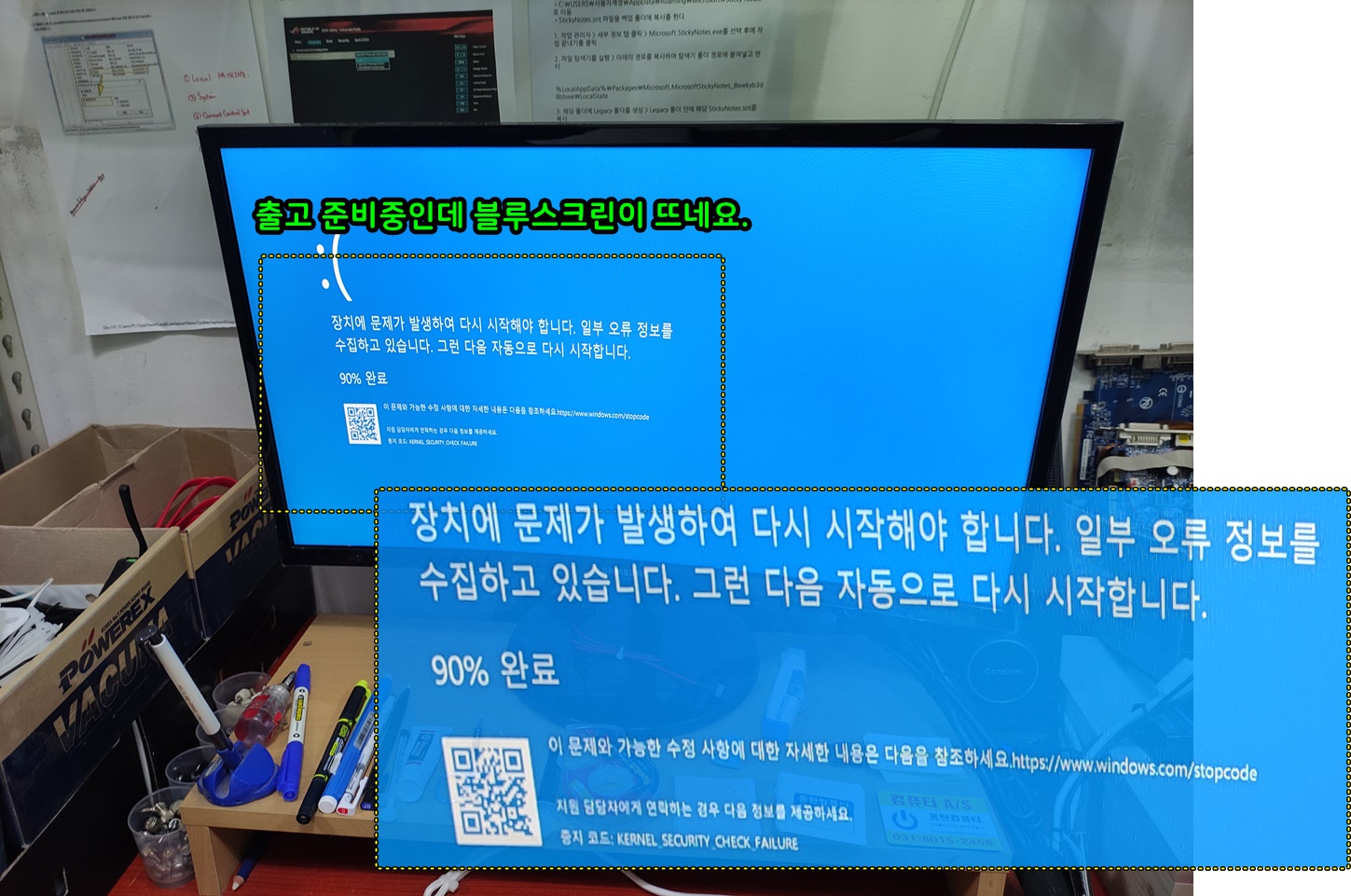 컴퓨터 청소하고 출고 준비하고 있었는데요. 아래와 같이 블루스크린이 뜨네요.