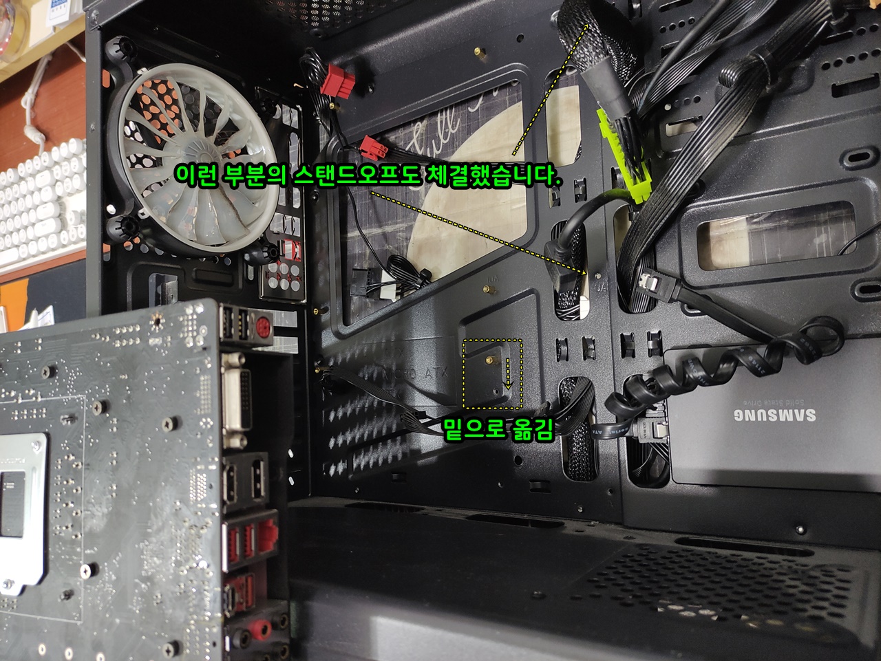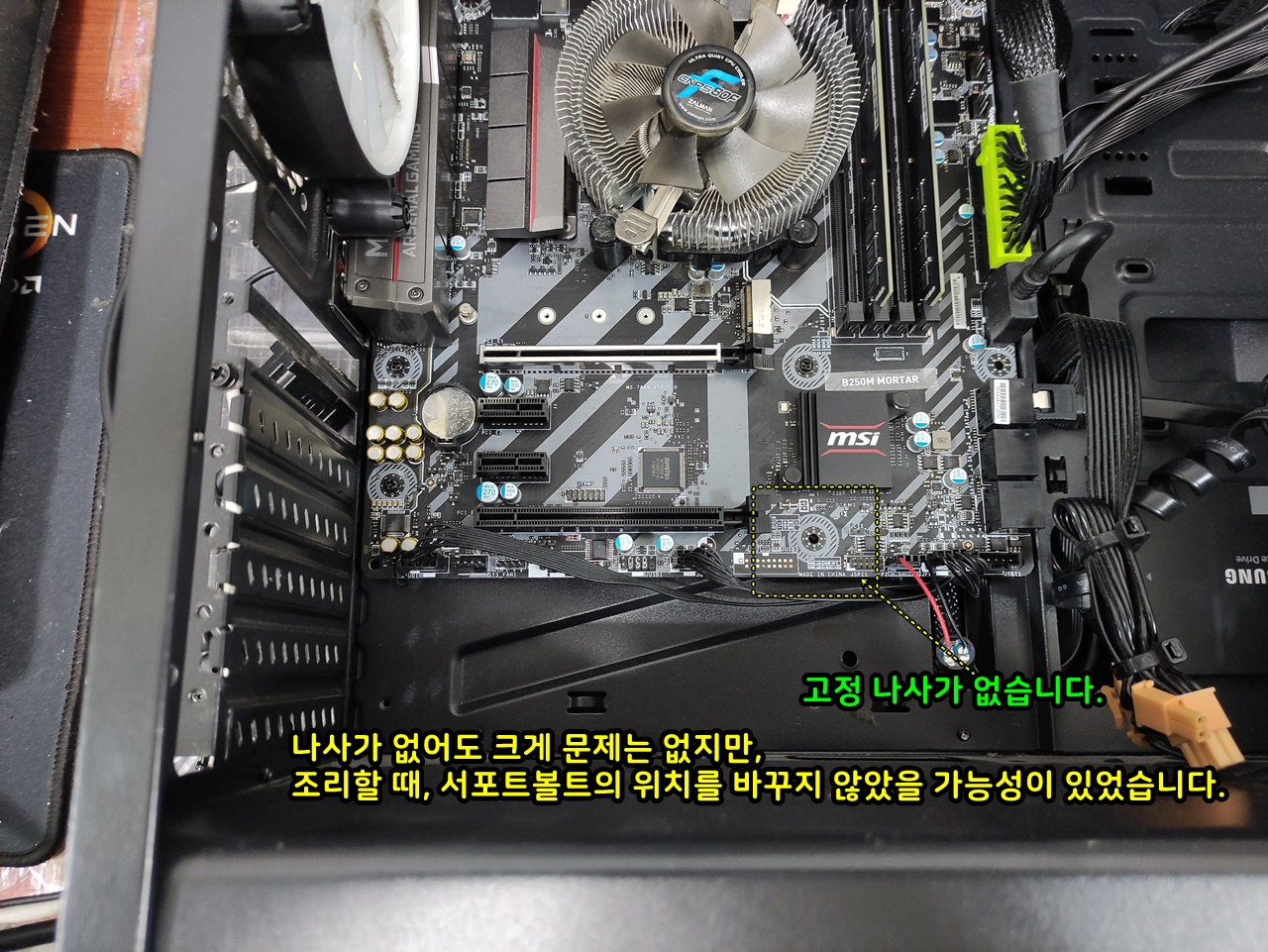 기판이 mATX 사이즈이지만 옆으로 길어서 추가로 서포트볼트를 체결했습니다.