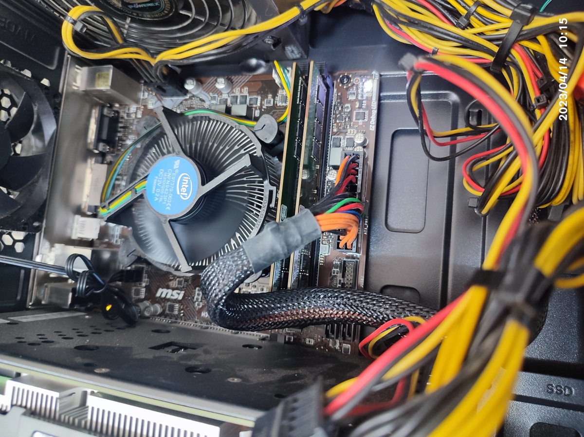 이사 후에 화면이 안 켜지는 증상으로 찾아주신 손님의 컴퓨터입니다. 메모리가 메모리 슬롯에서 빠진 상태입니다. 메모리를 재장착하고 정상적으로 화면이 잘 뜨고 있습니다.