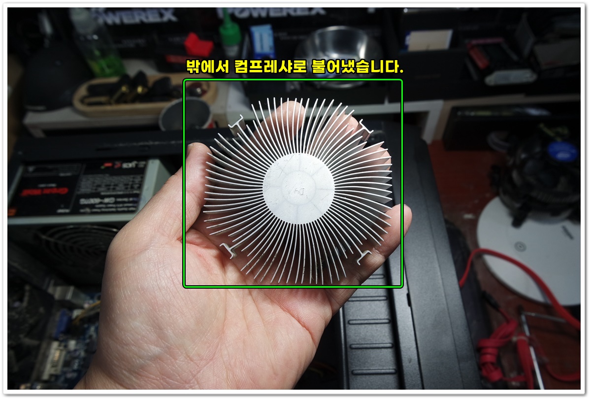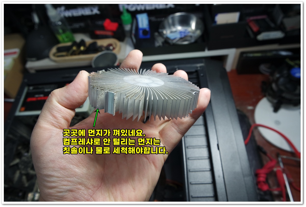 그래도 방열판 사이사이의 먼지는 날아가지 않았네요. (이 먼지까지 제거하려면, 물청소 + 칫솔질로 제거할 수 있습니다.)